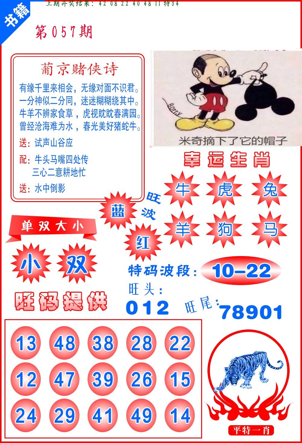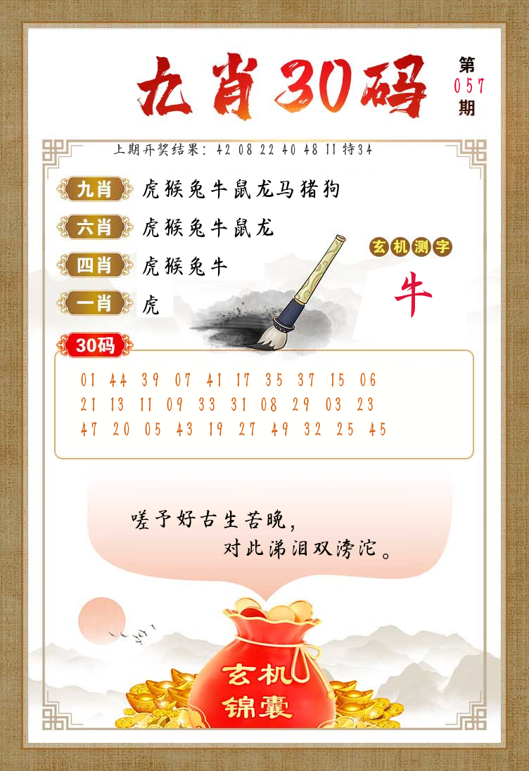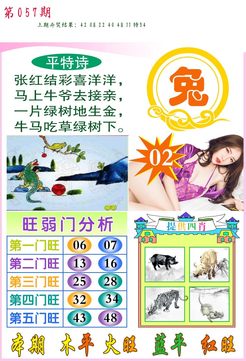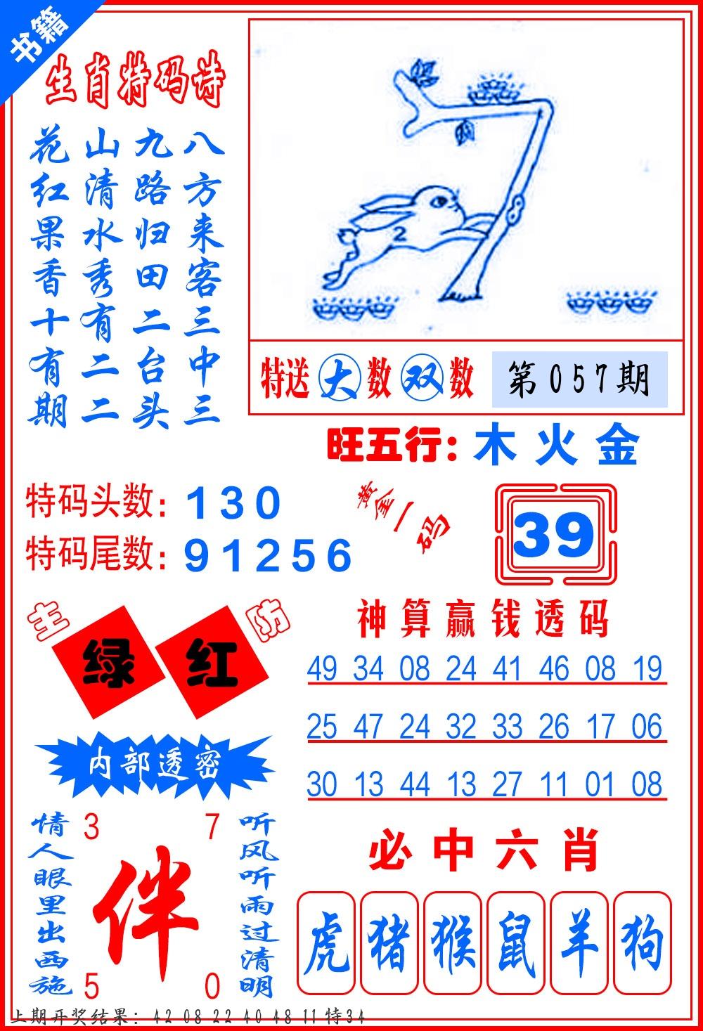 | 057期 四肖: 猪虎狗牛 | ⑤码: 32.29.22.44.17 |