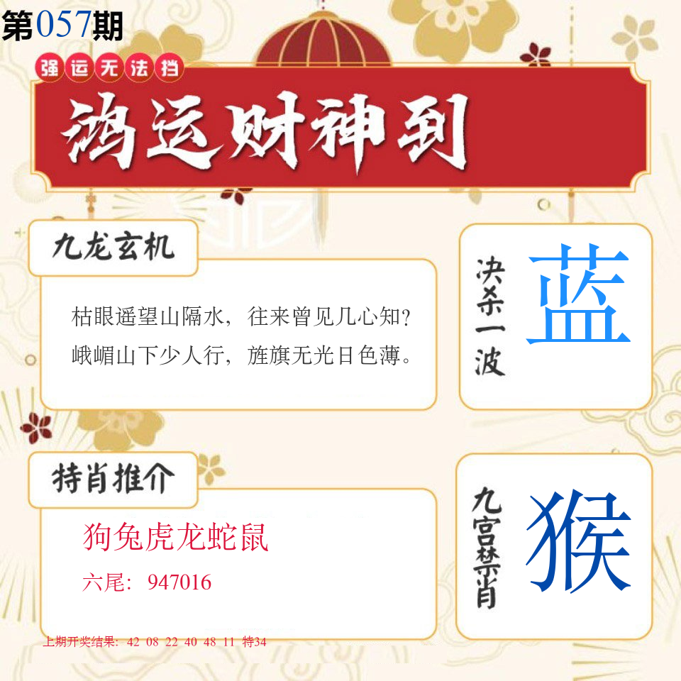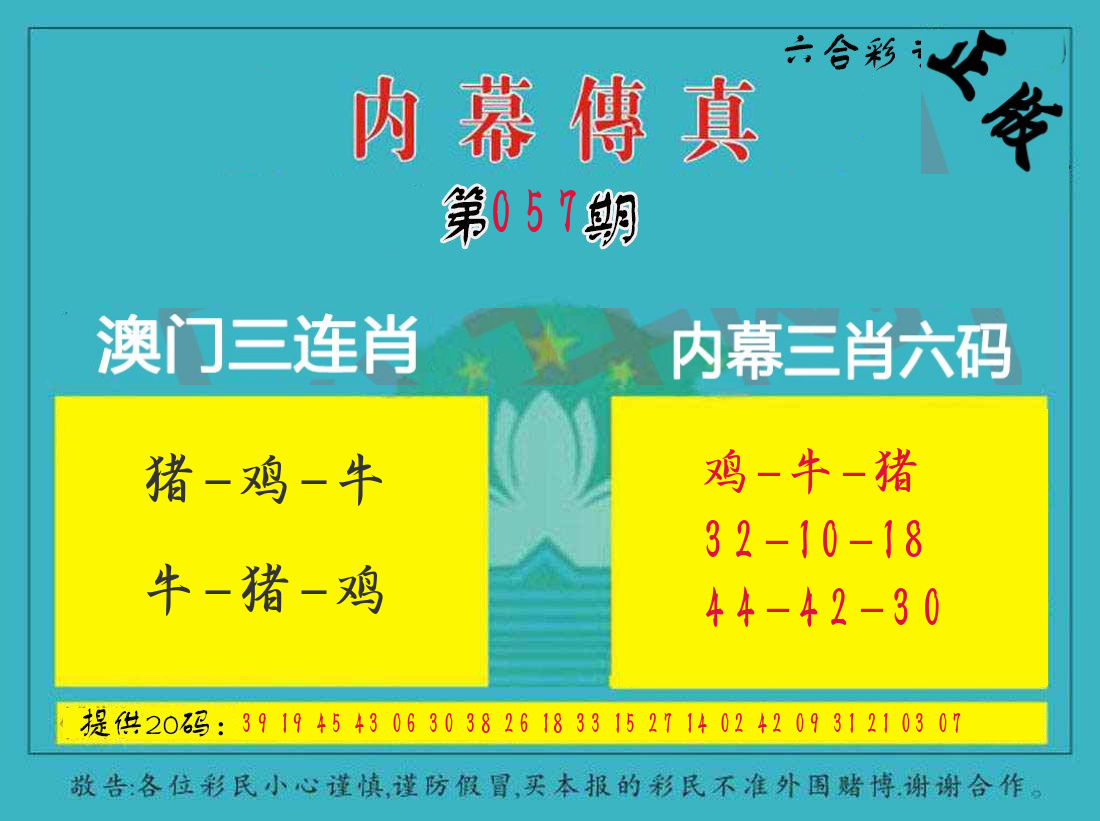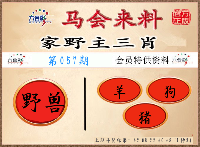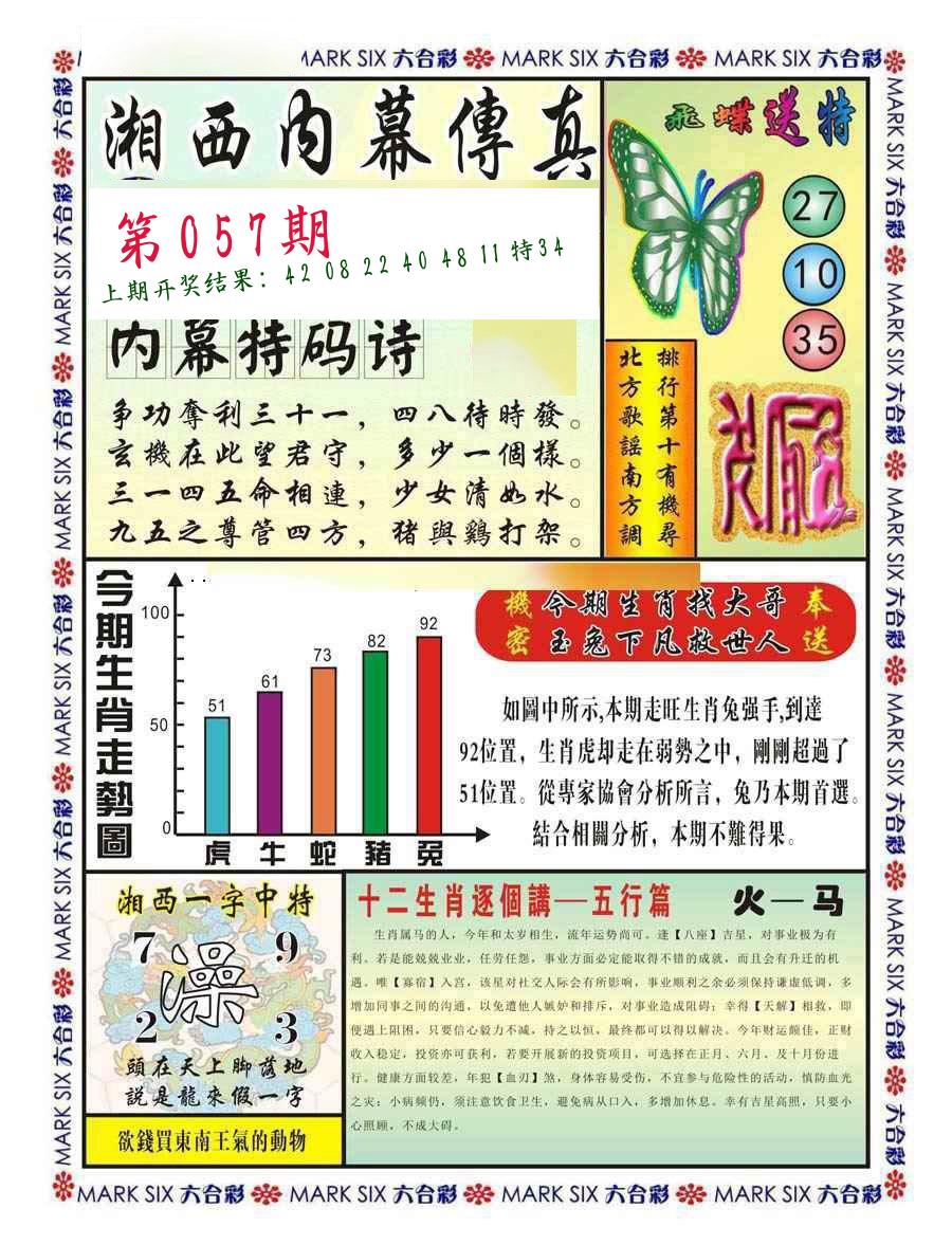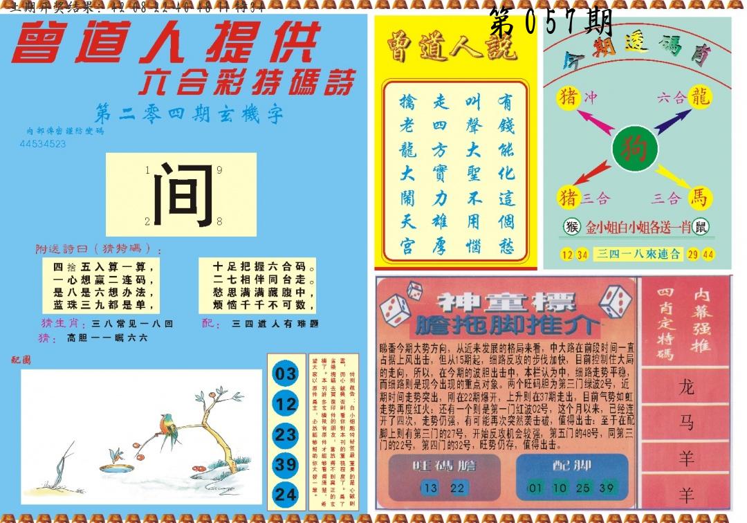 | 057期 四肖: 猪虎狗牛 | ⑤码: 32.29.22.44.17 |