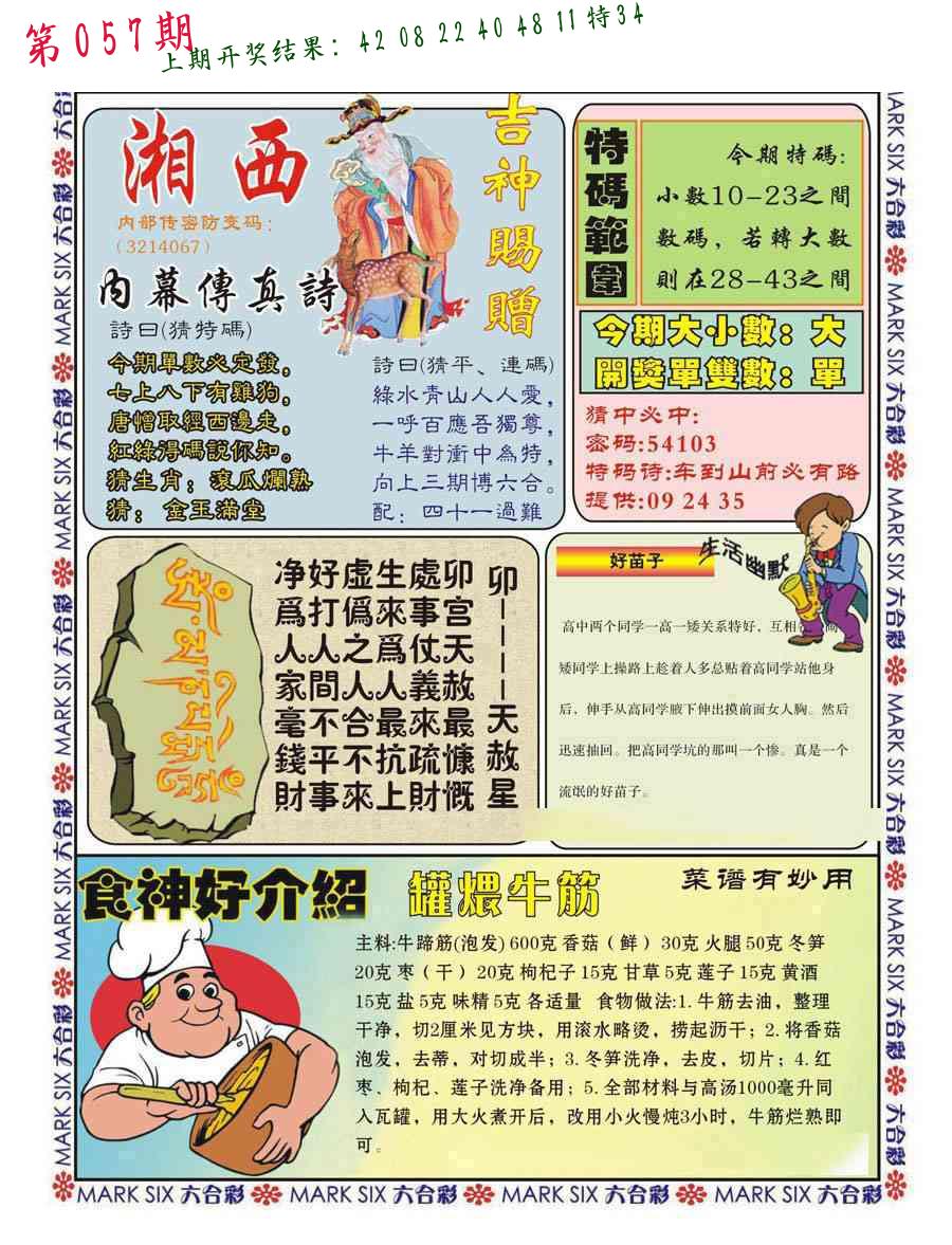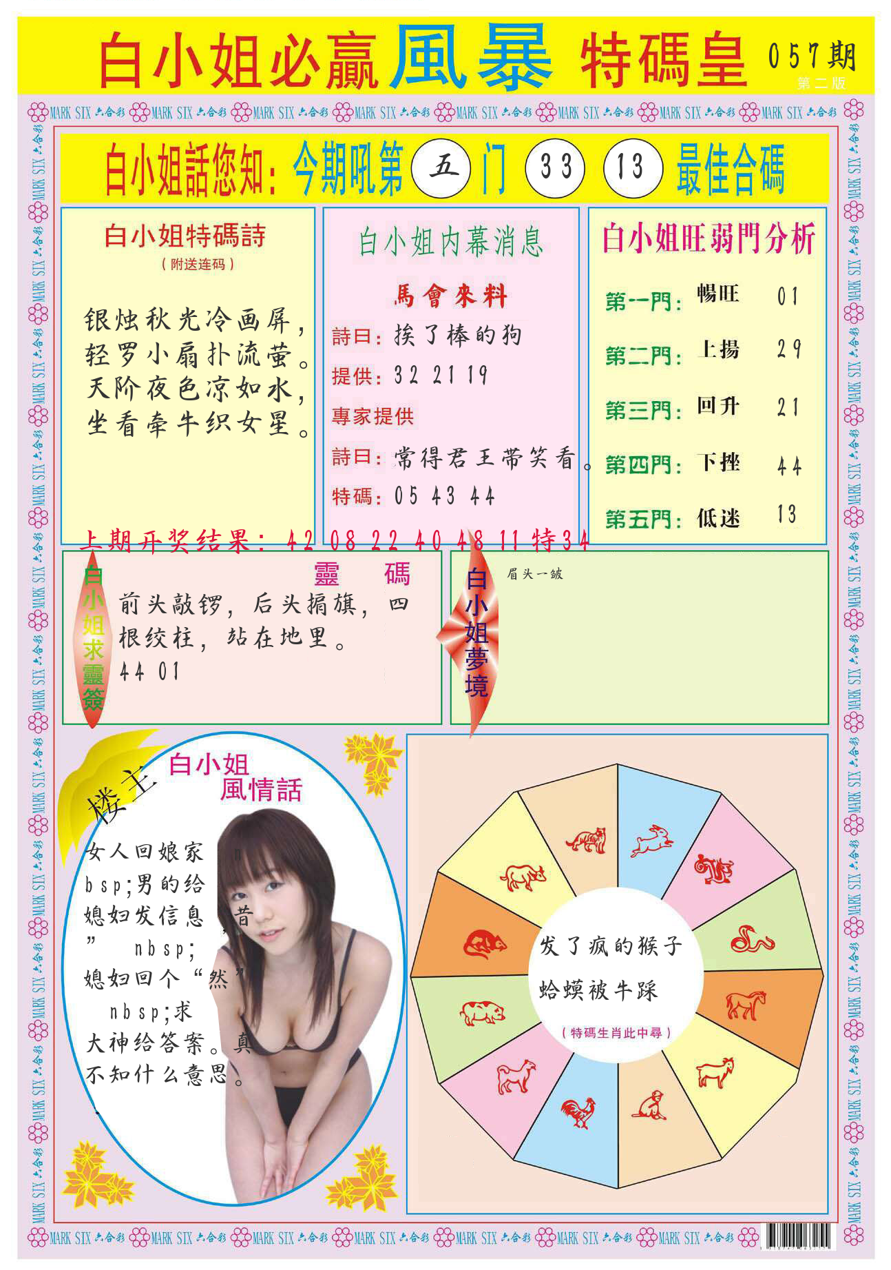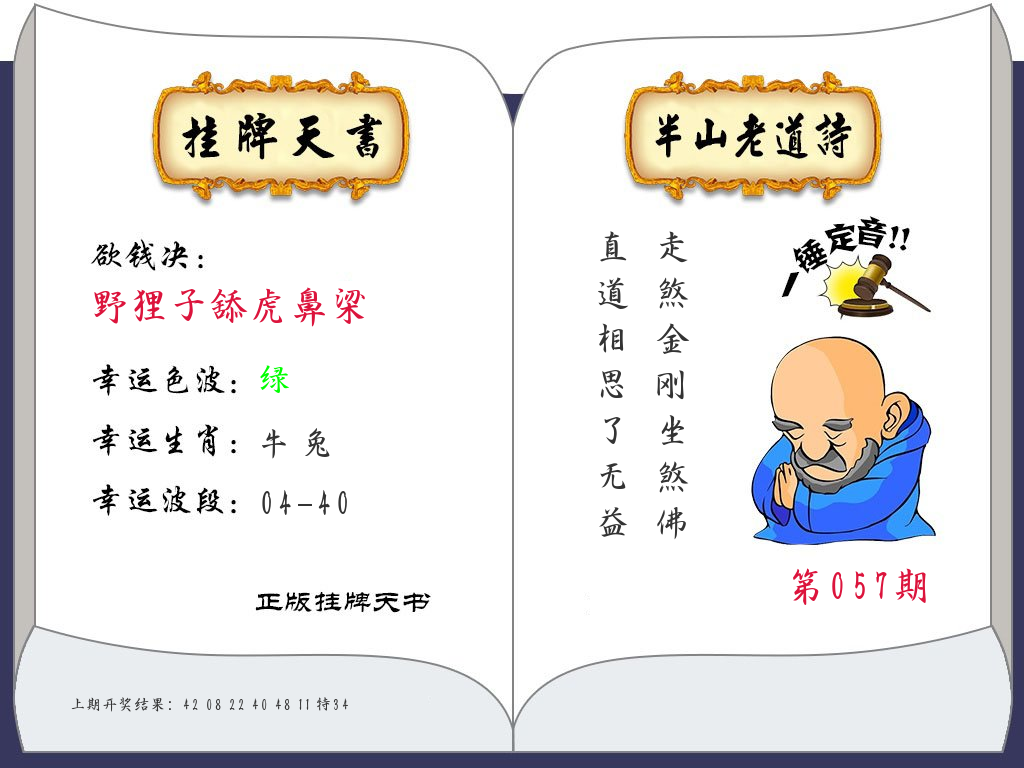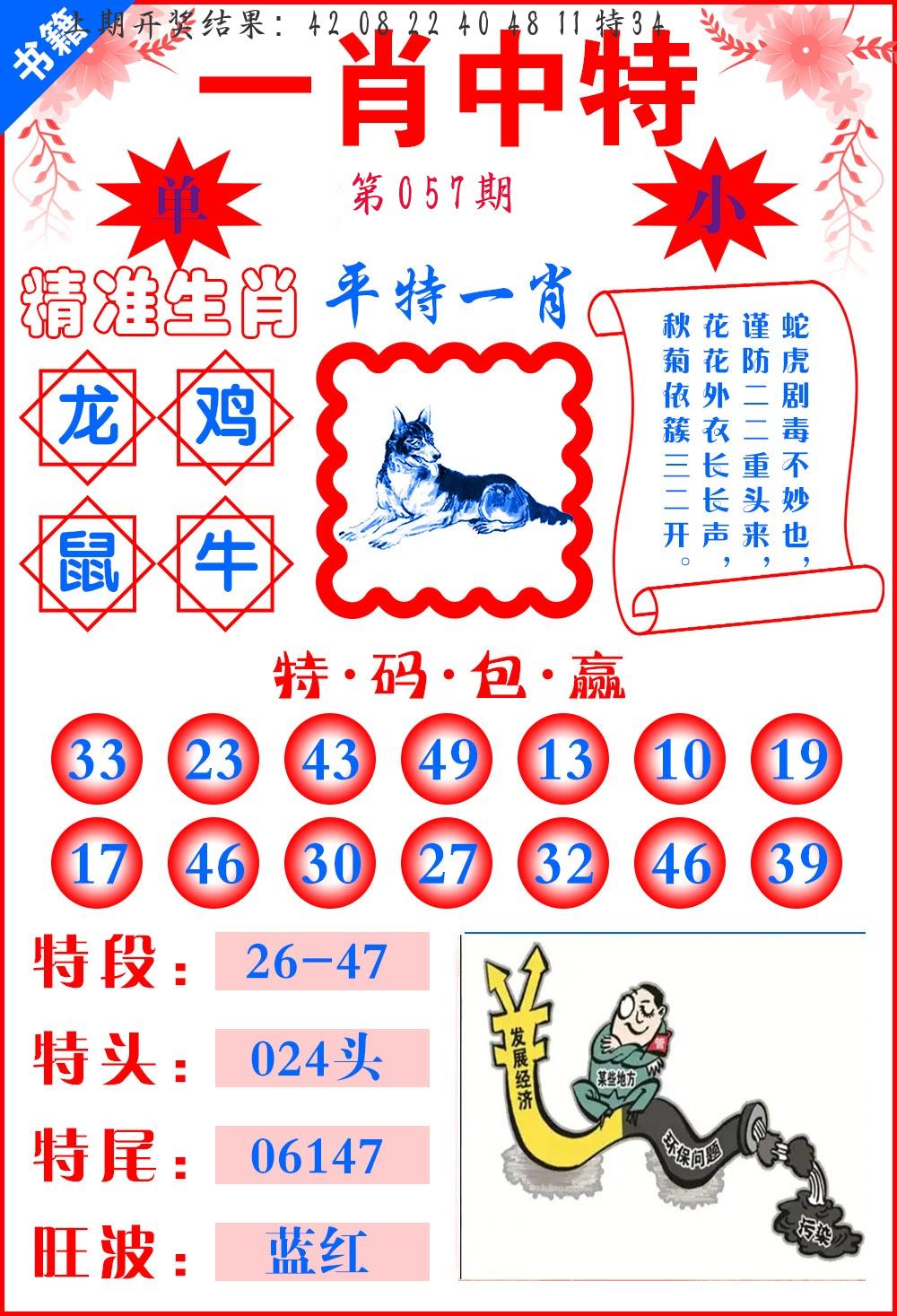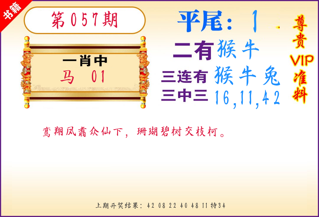 | 057期 四肖: 猪虎狗牛 | ⑤码: 32.29.22.44.17 |