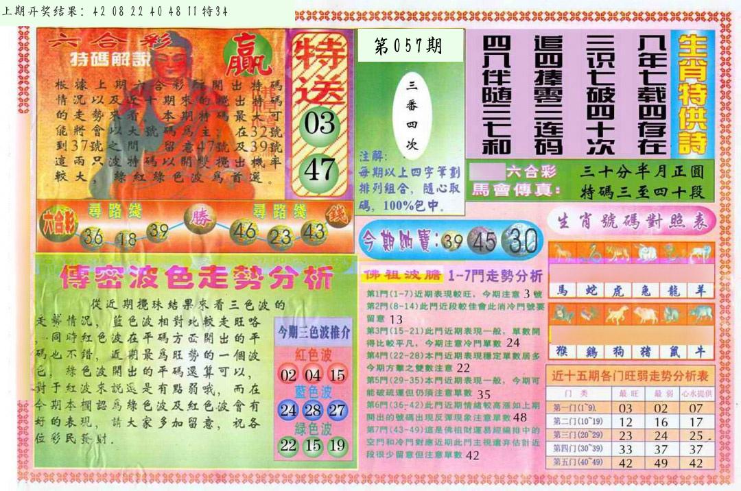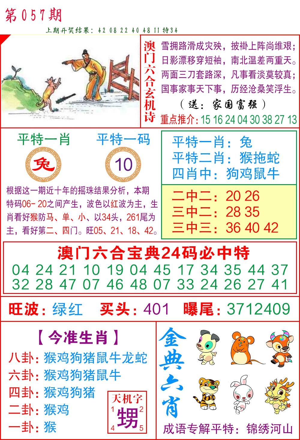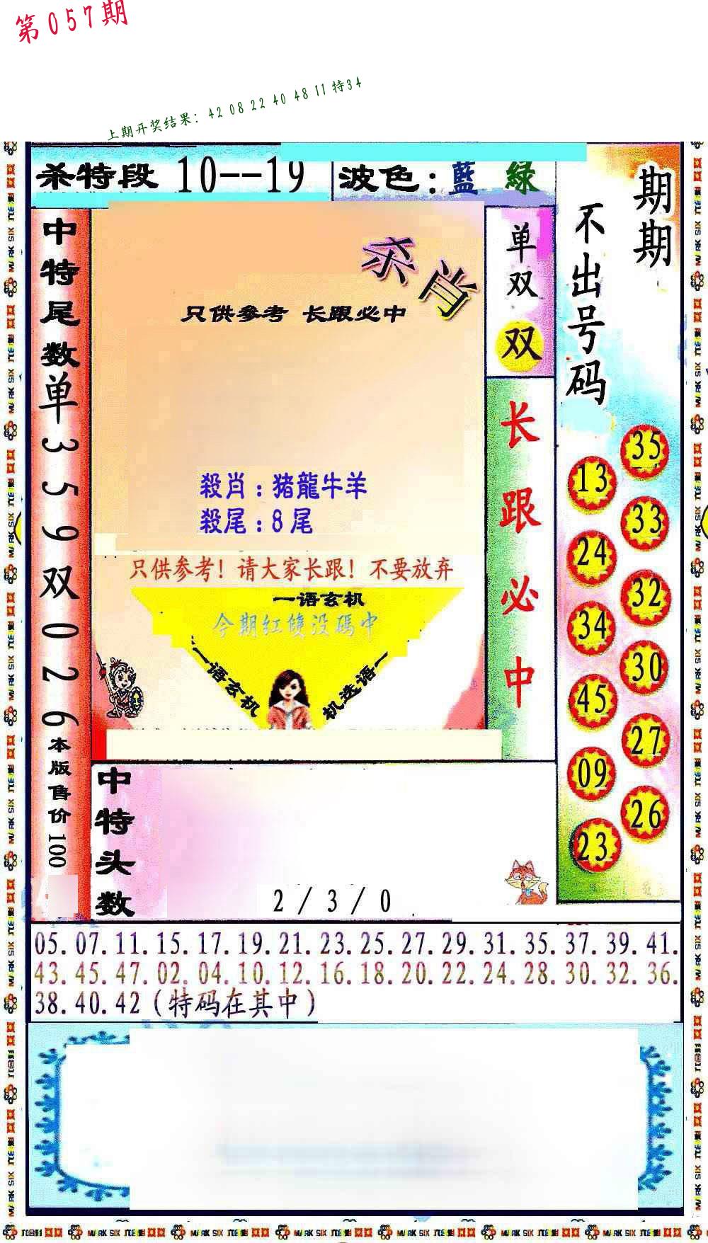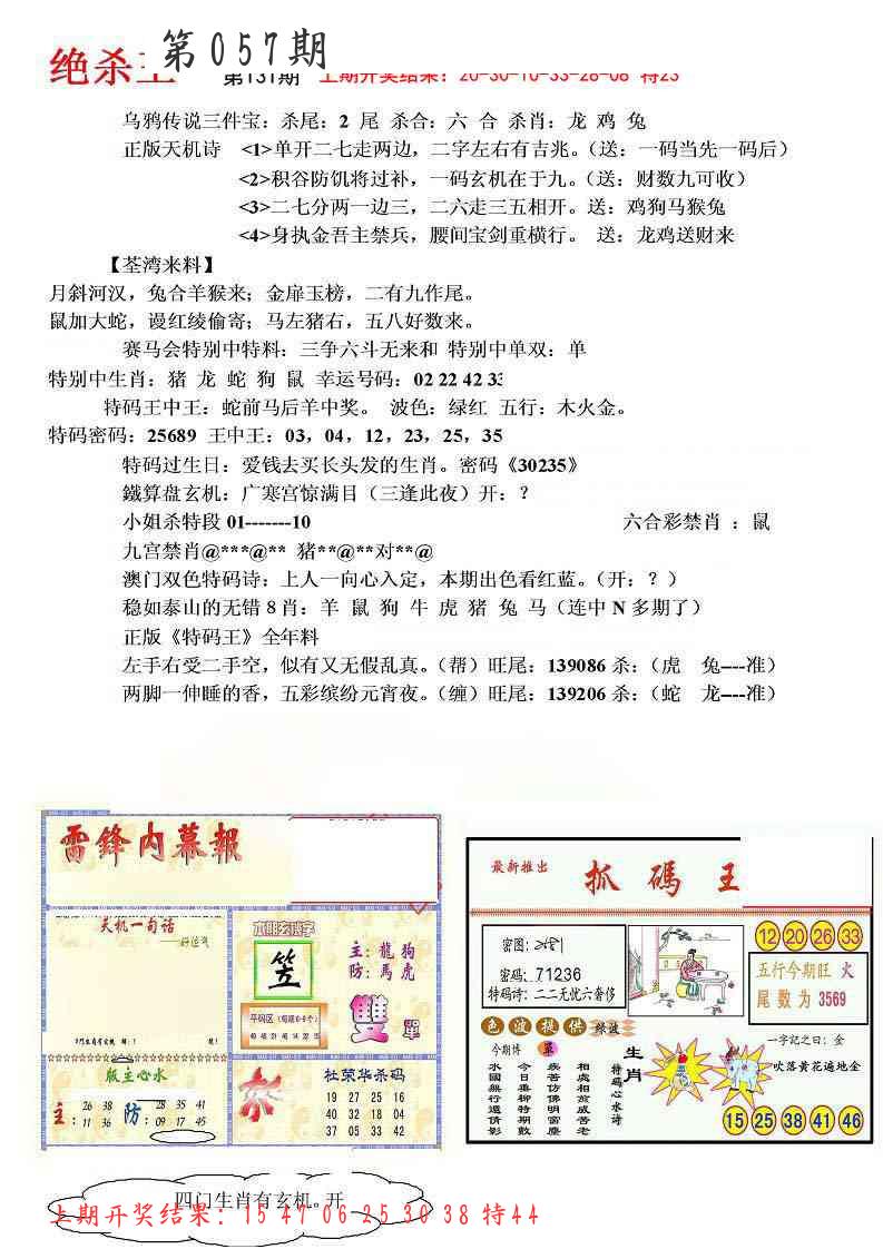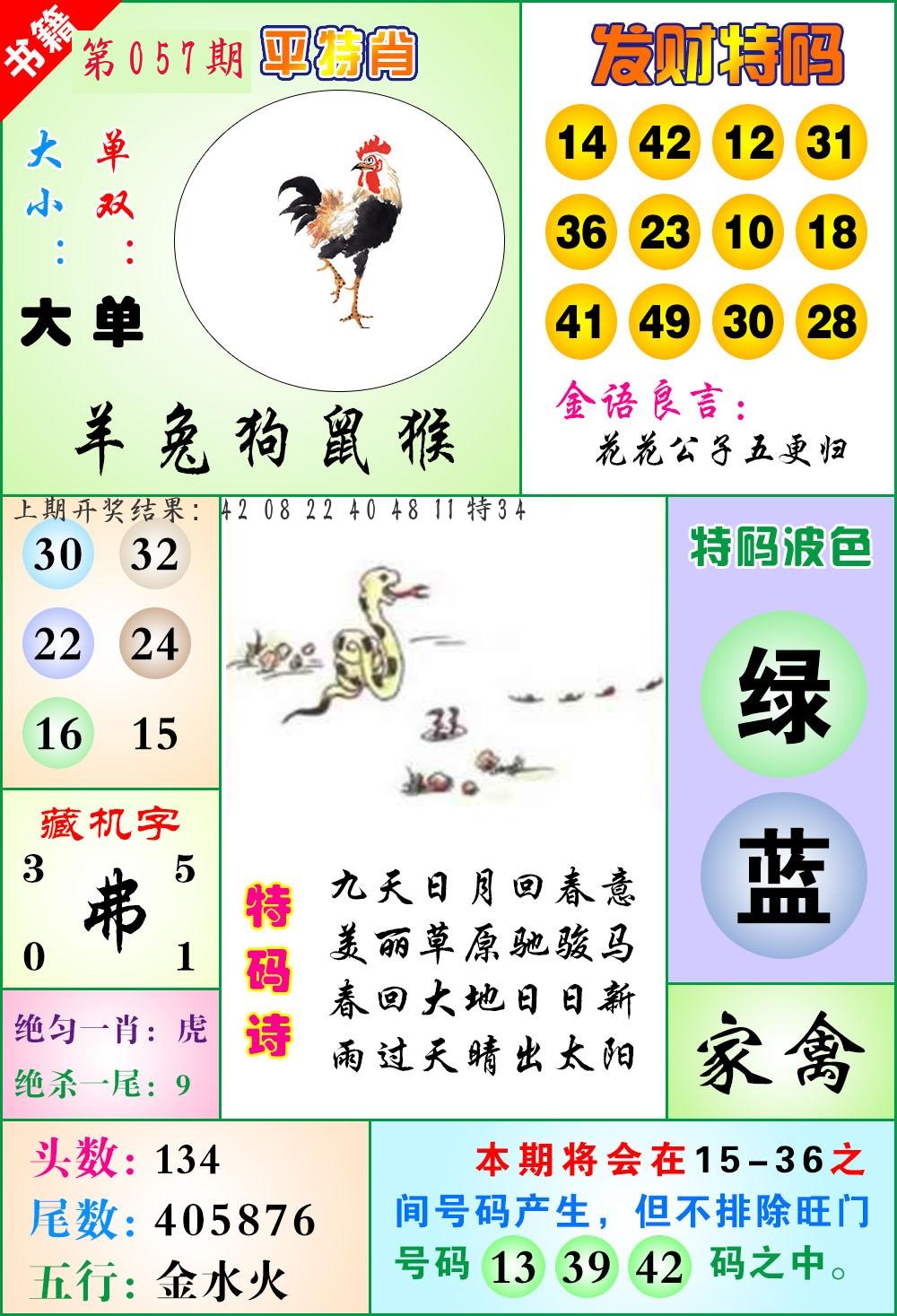 | 057期:平特一尾【888尾】开:????? |