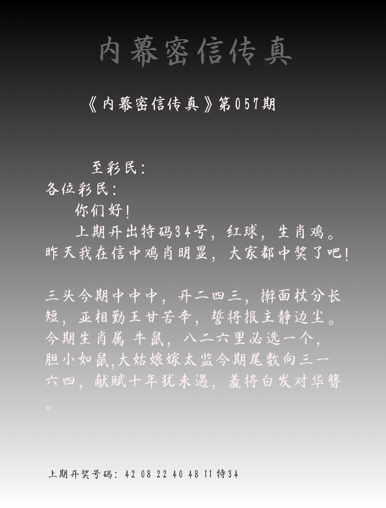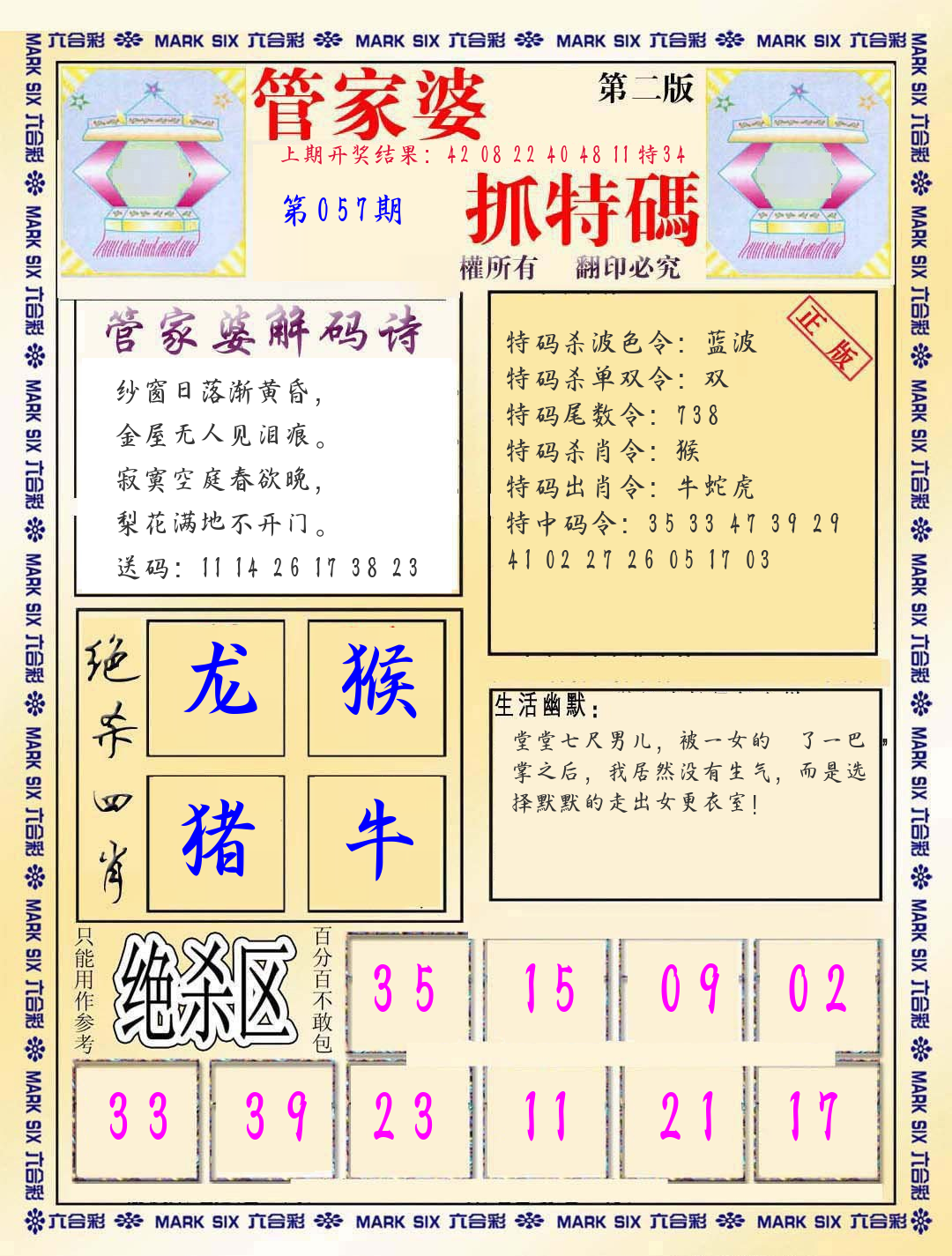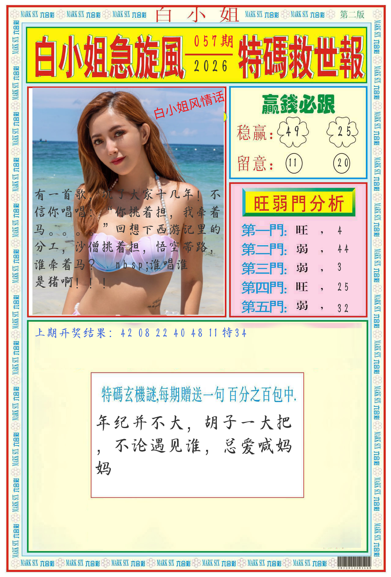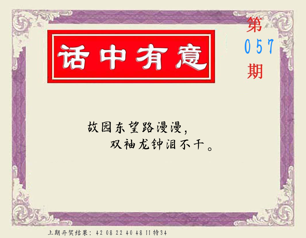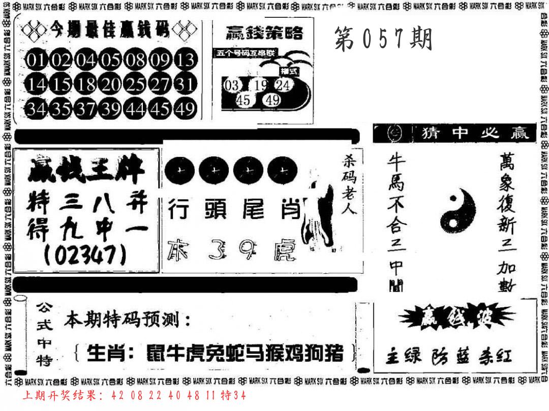 | 057期:平特一尾【888尾】开:????? |