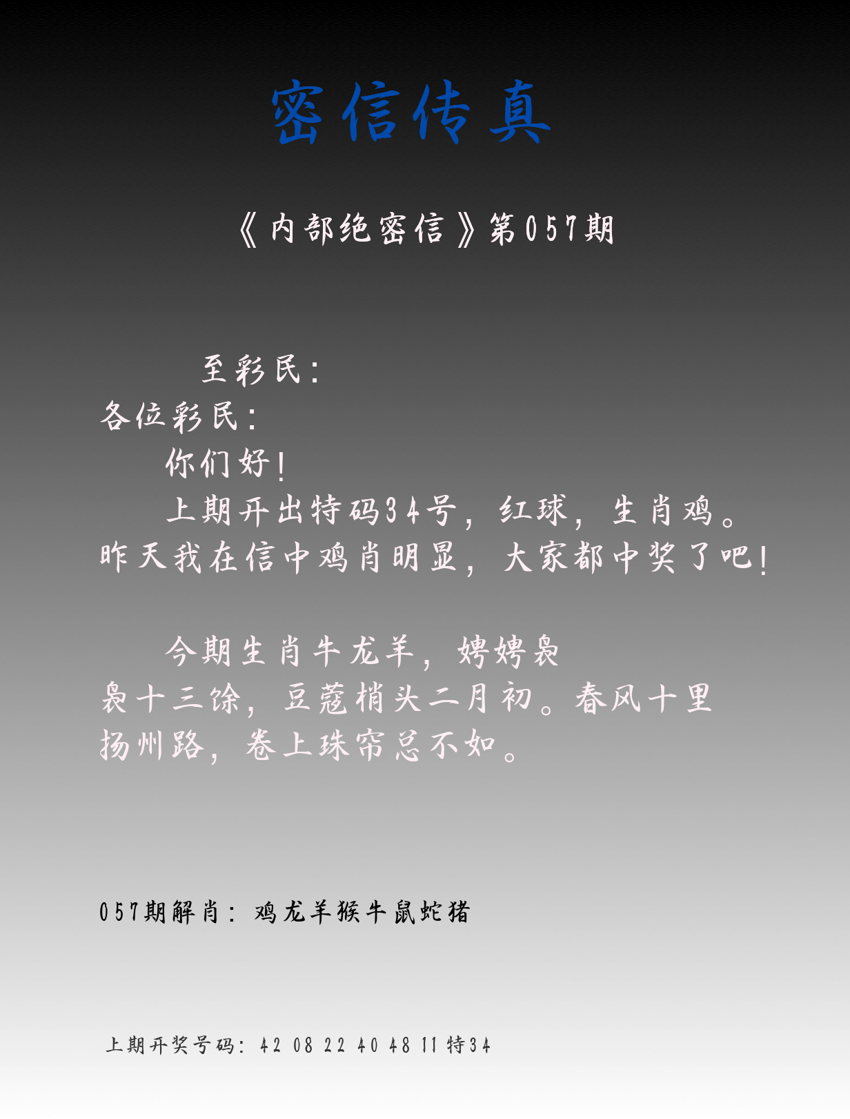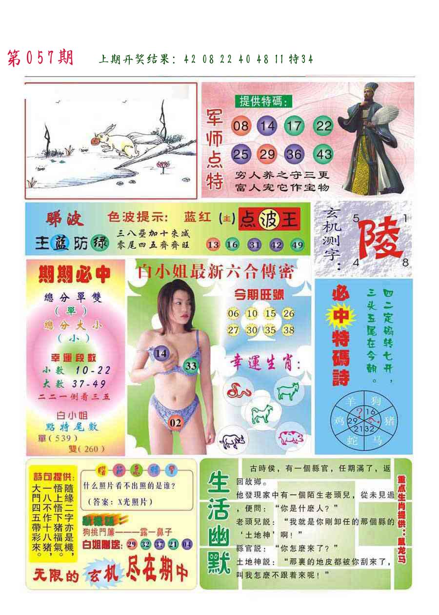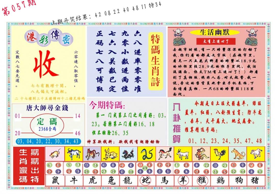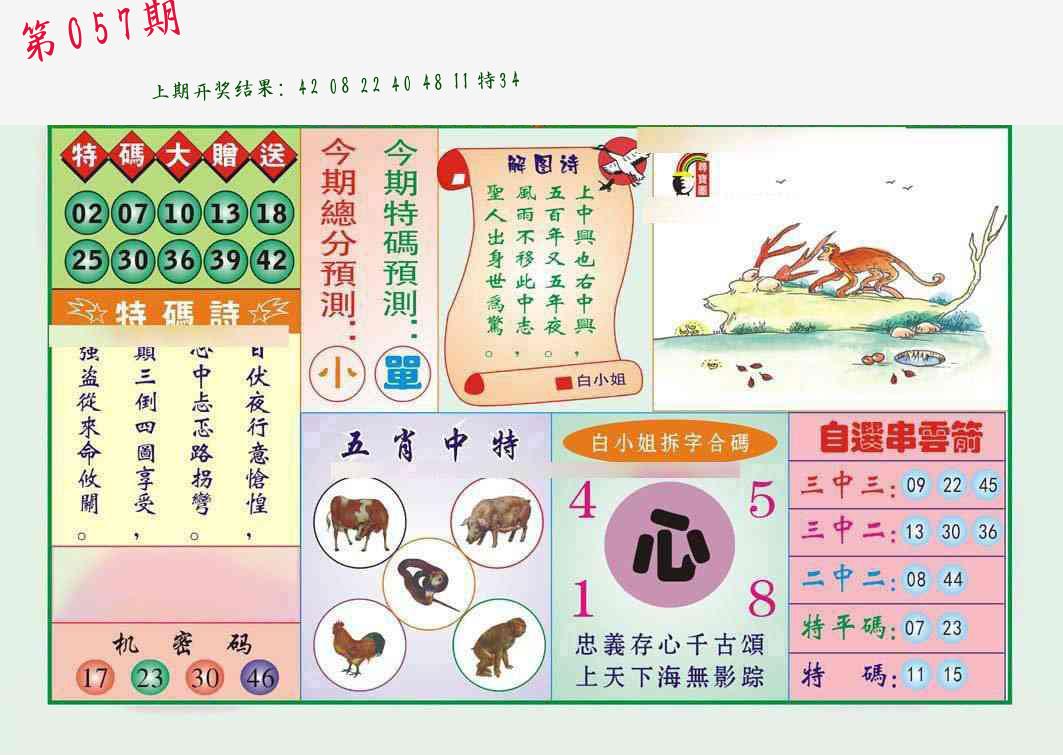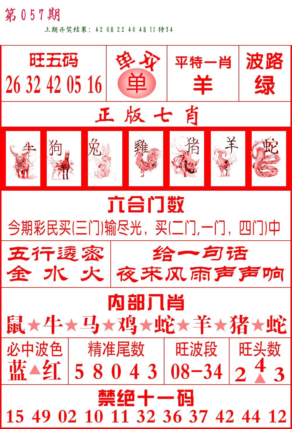 | 057期:8肖16码开:???????