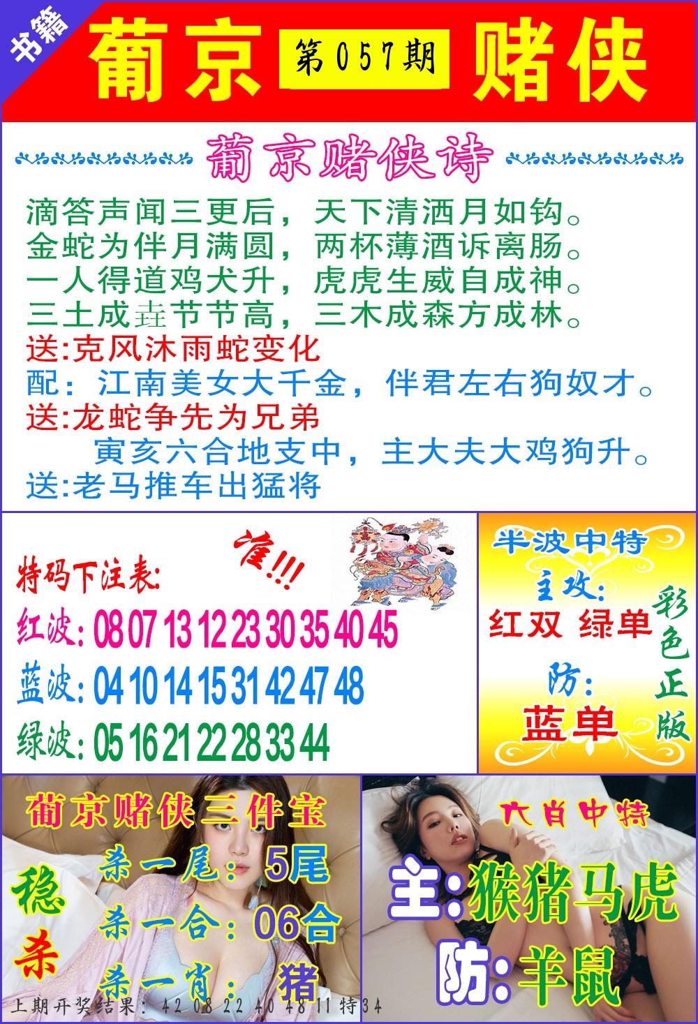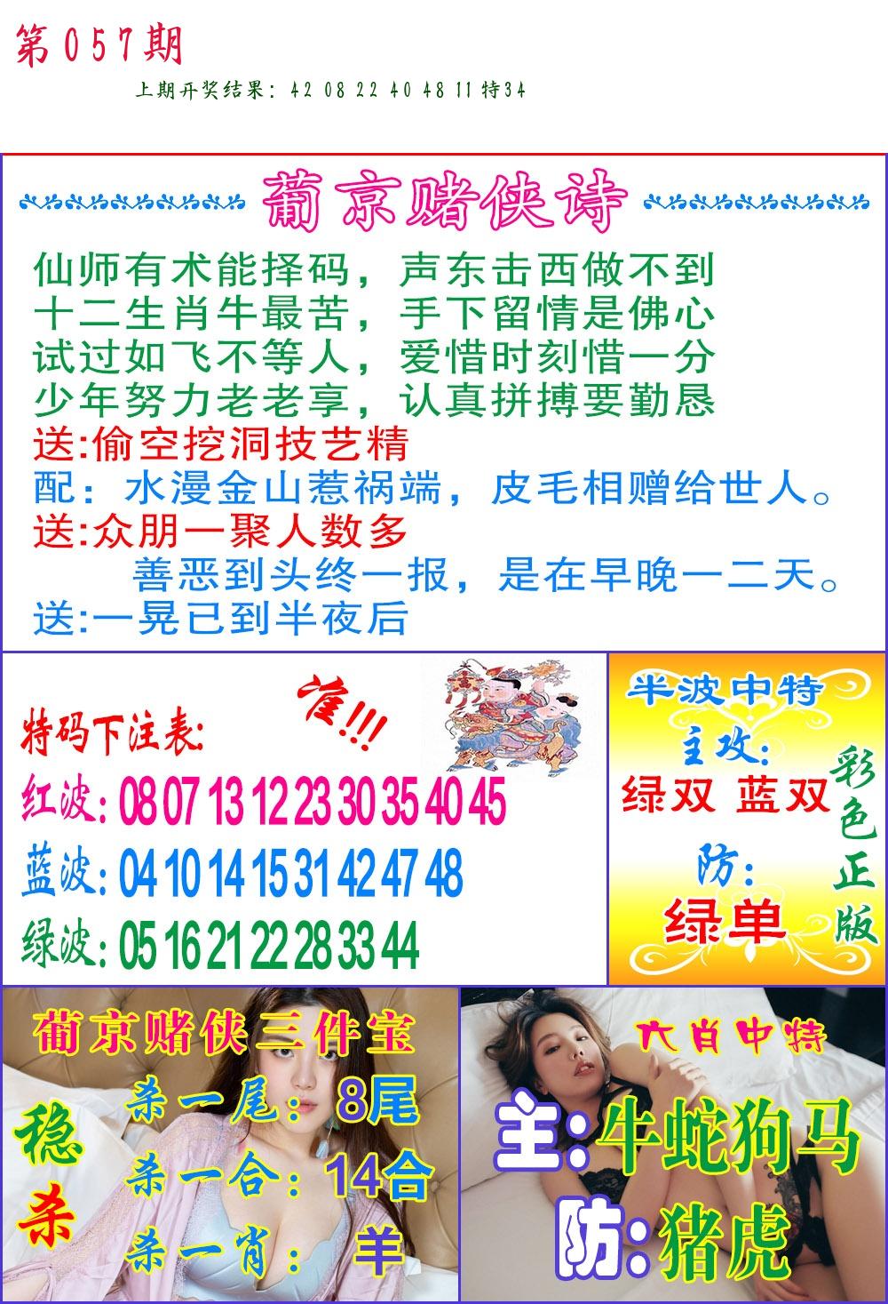 | 057期:绝密▲双波【绿波+蓝波】开:????? |