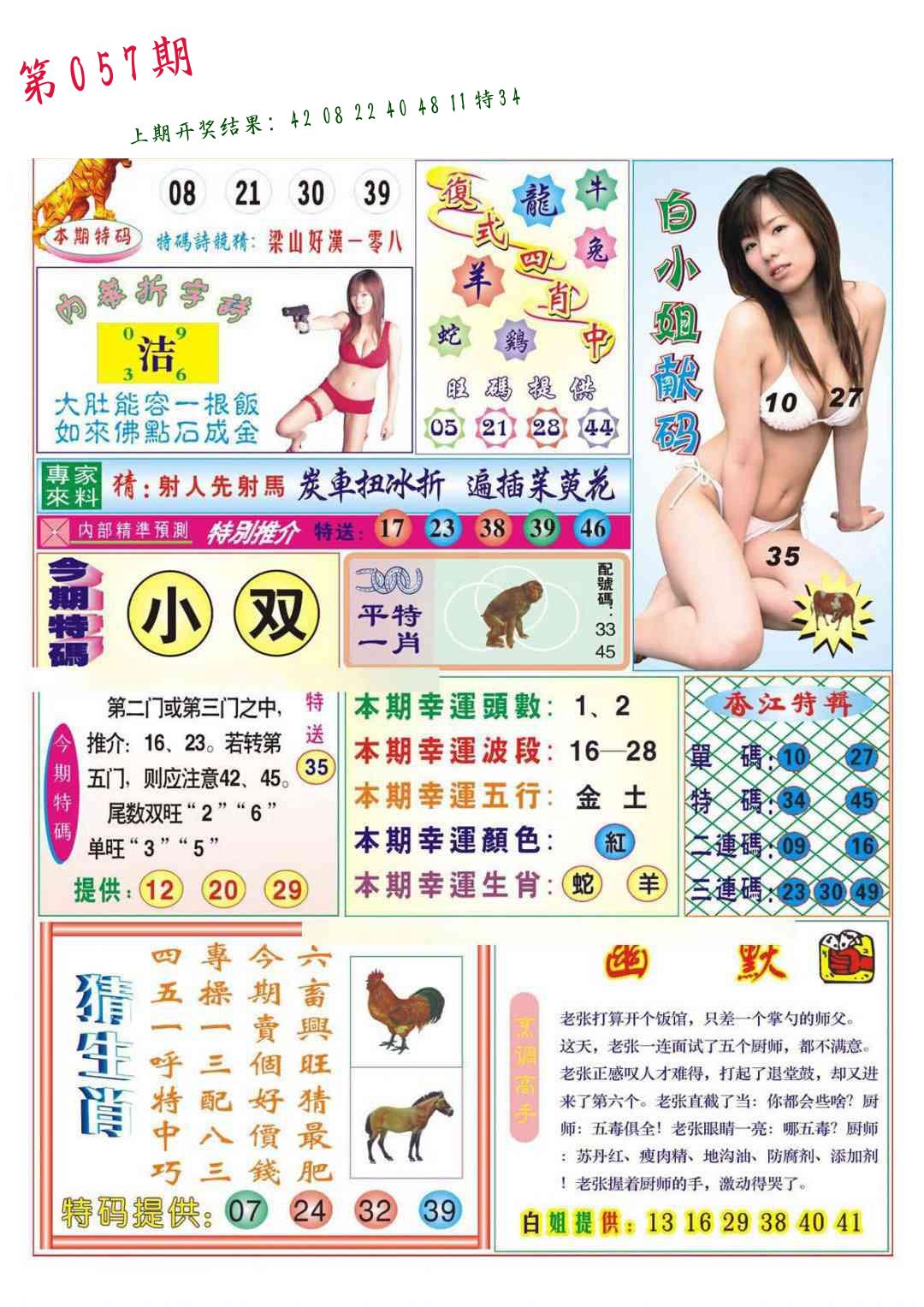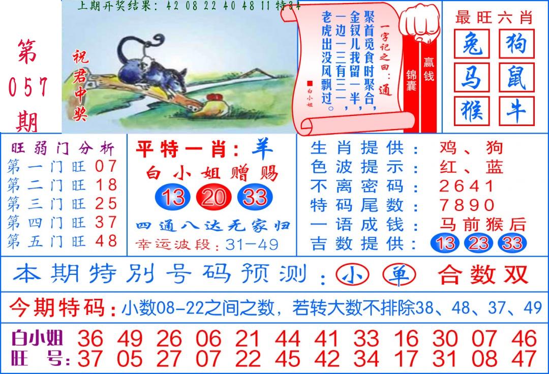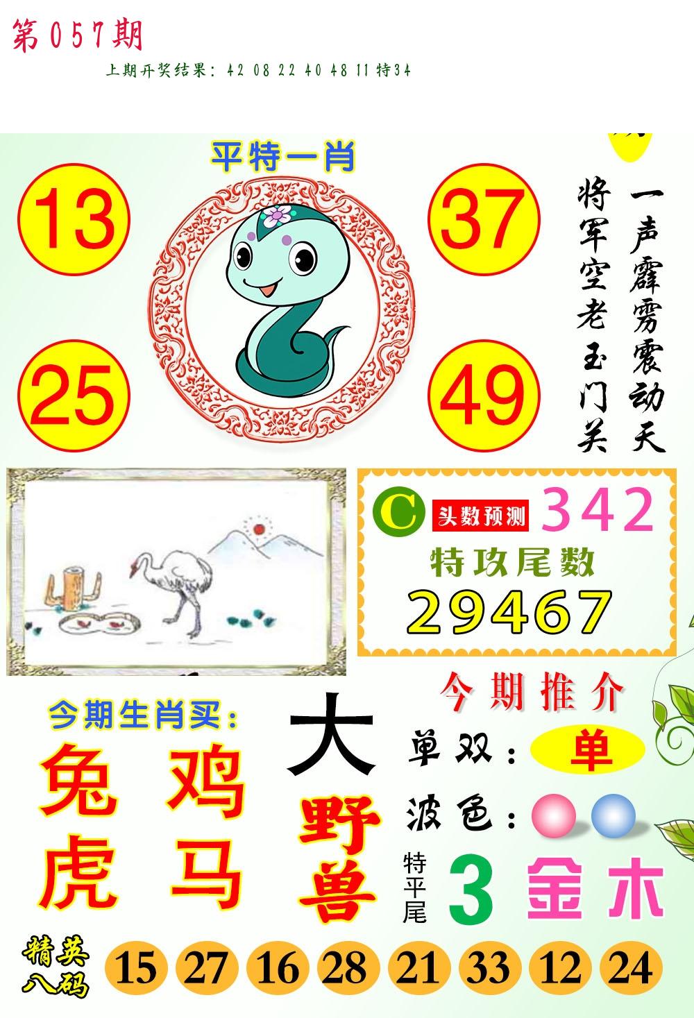 | 057期 二肖: 猪虎 | ③码: 32.29.22 |