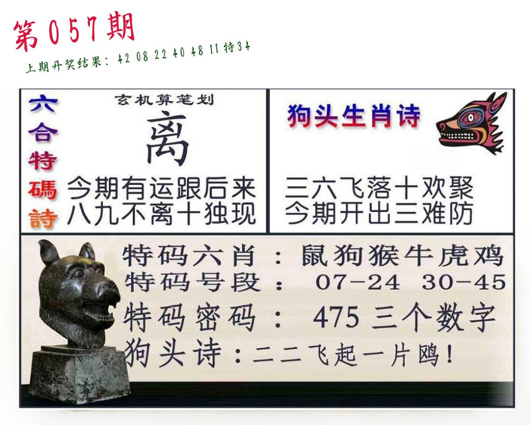 | 057期:2字爆平特【鸣吠】开:????? |