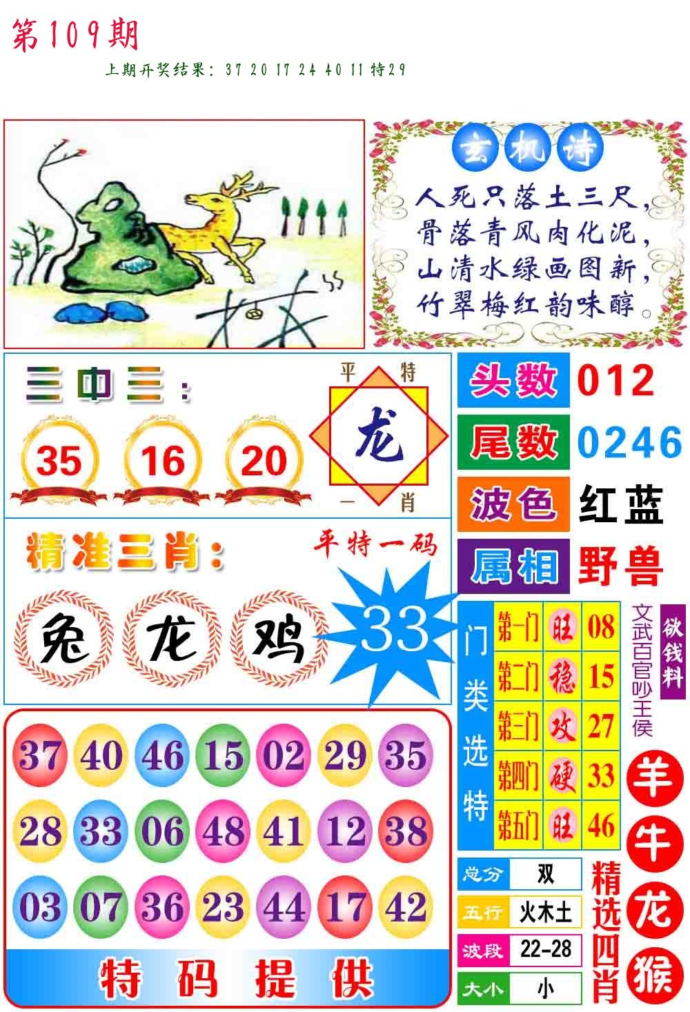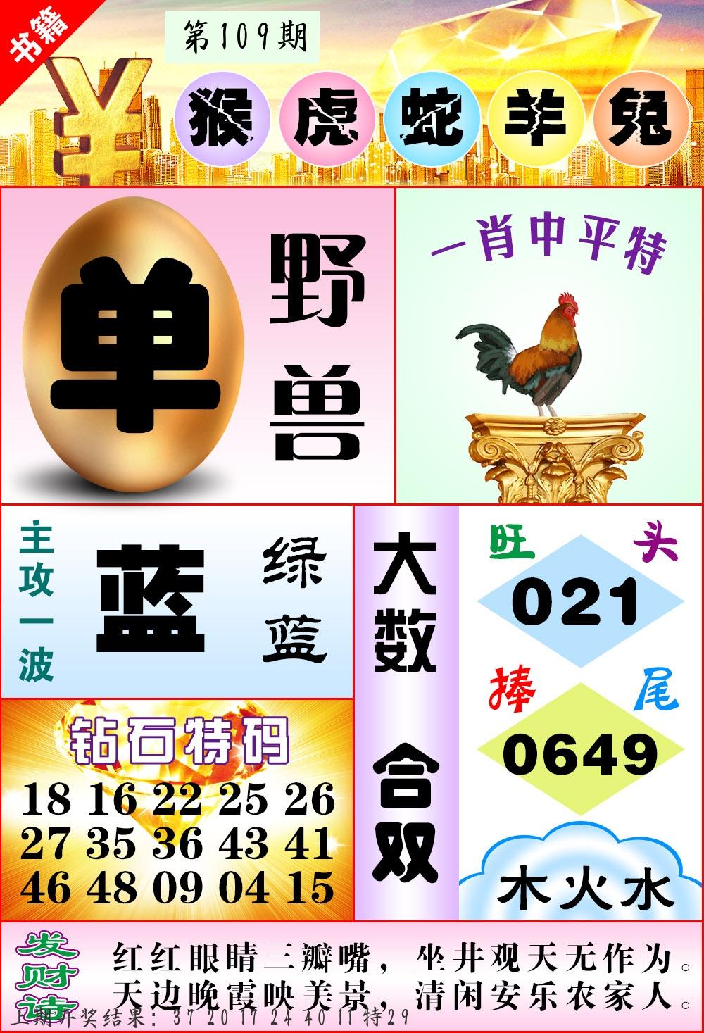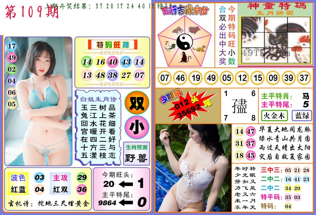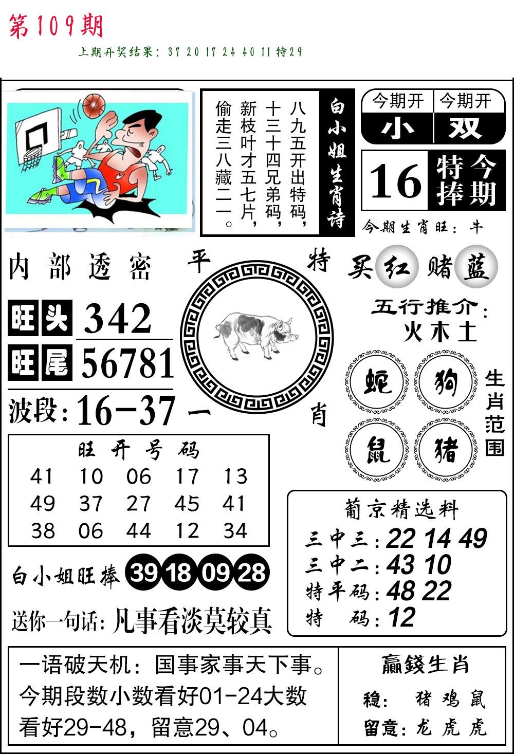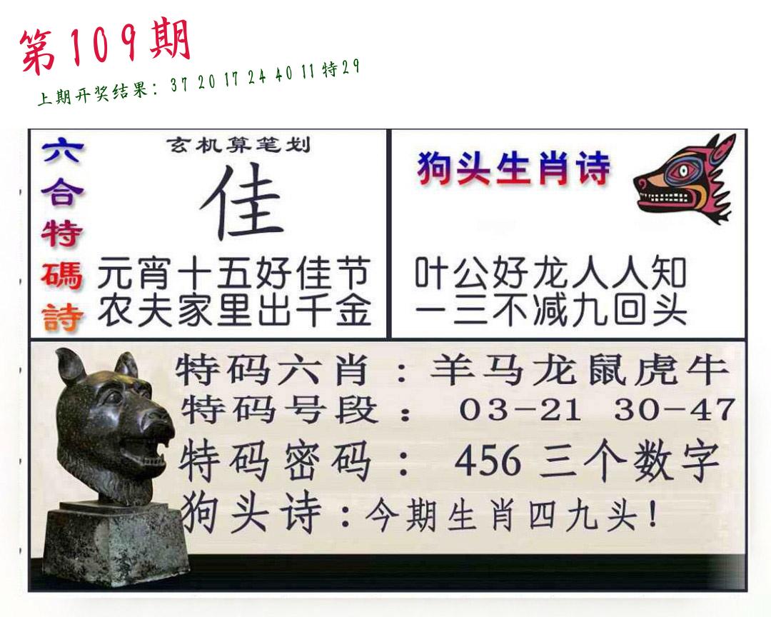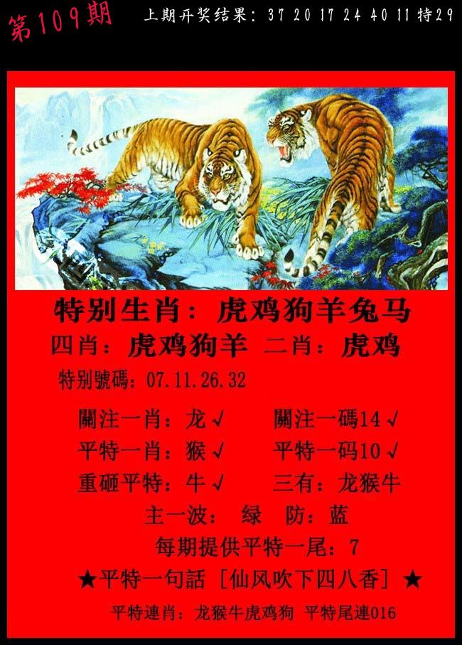 | 109期:2字爆平特【叶公】开:????? |