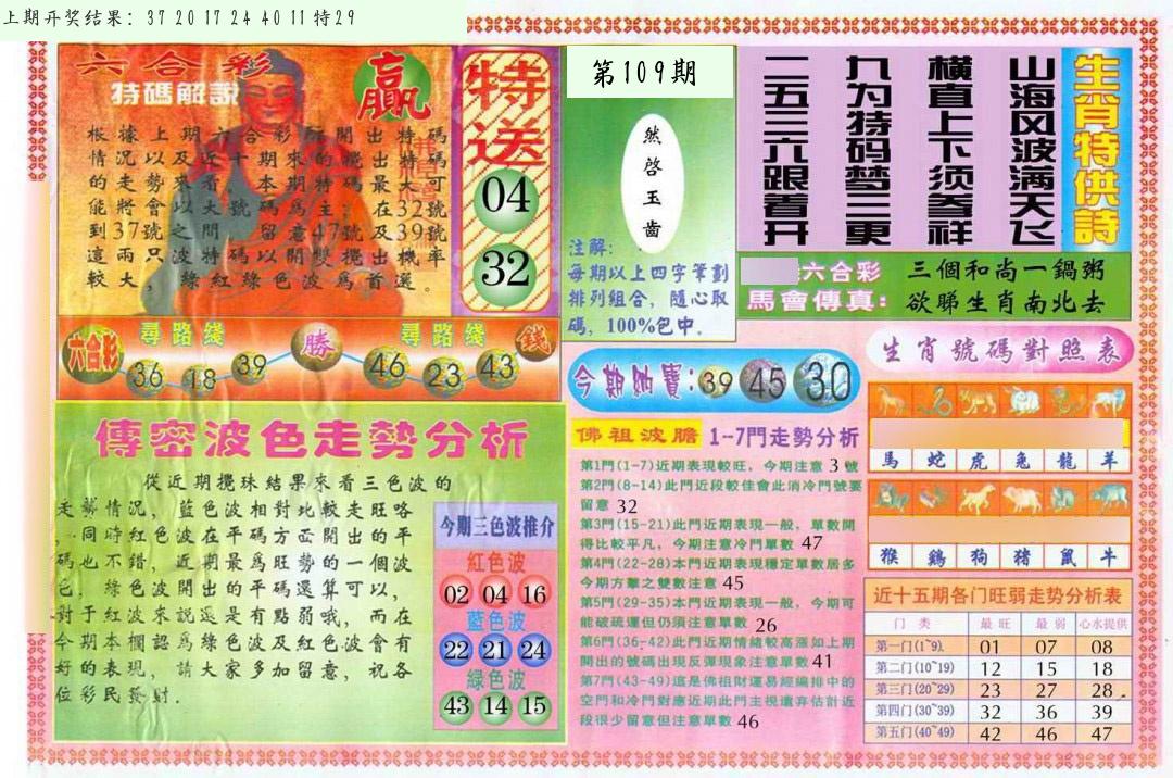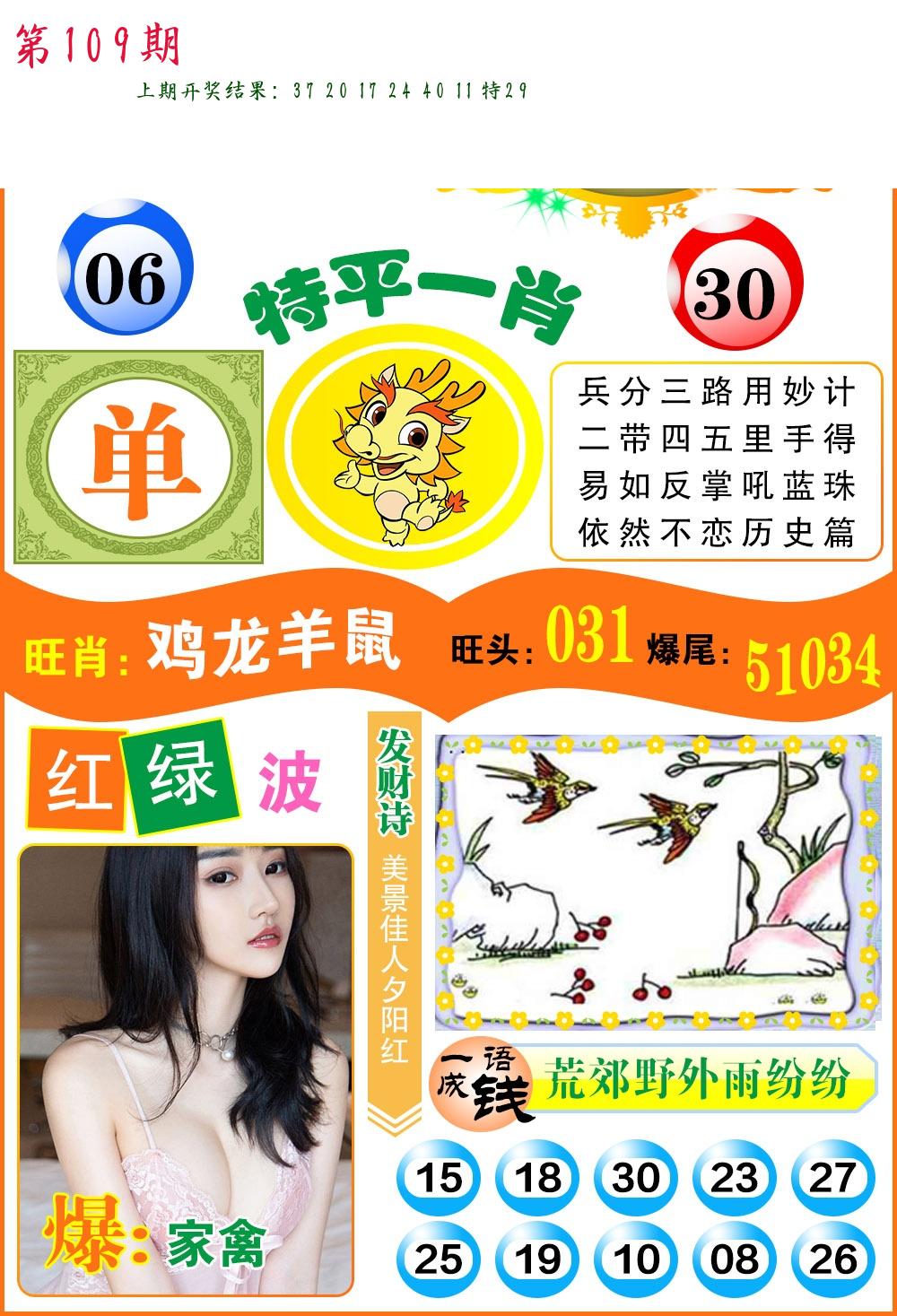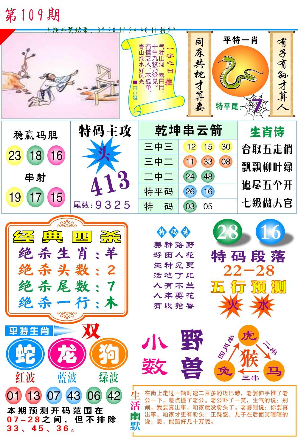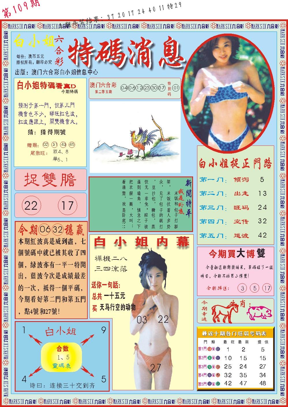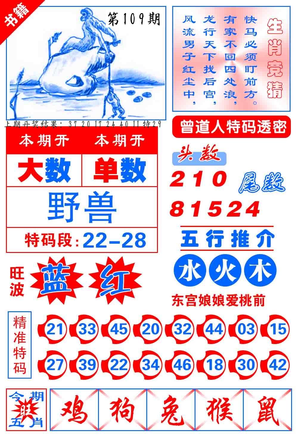 | 109期:2字爆平特【叶公】开:????? |