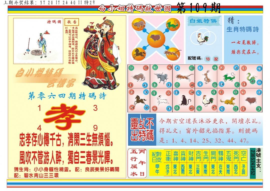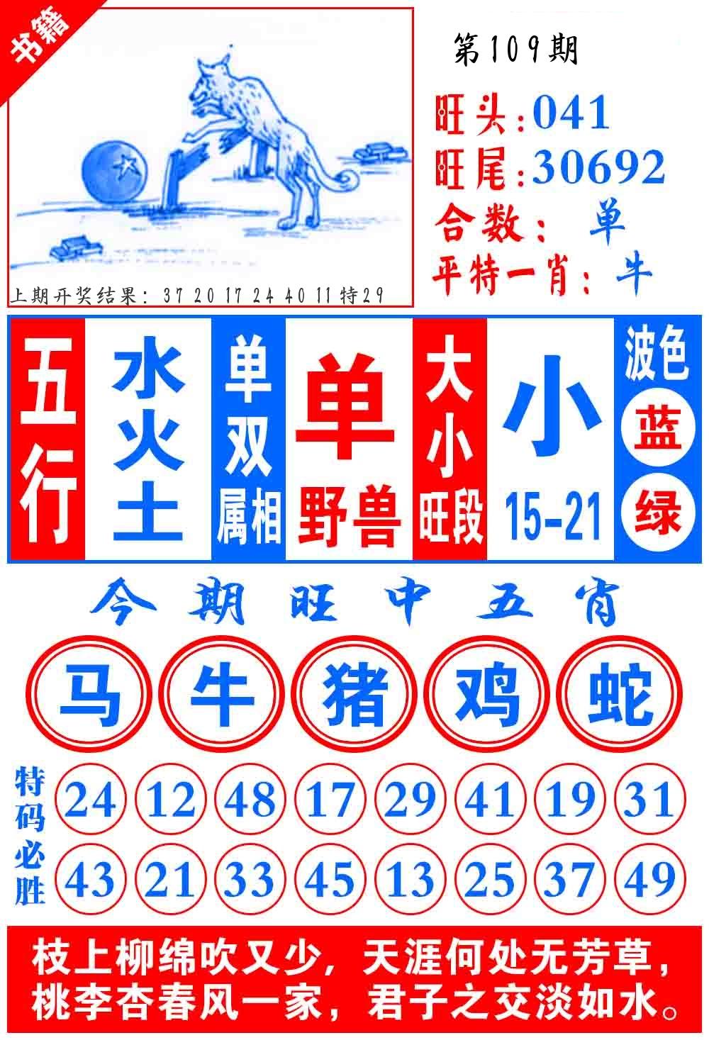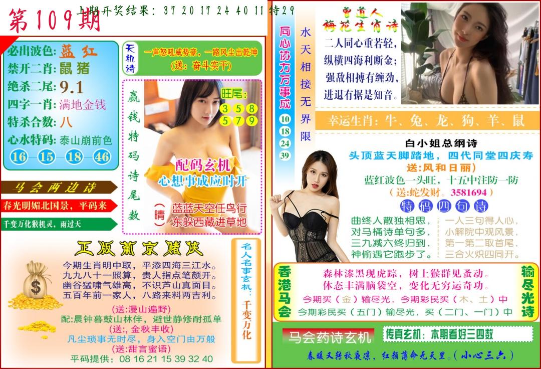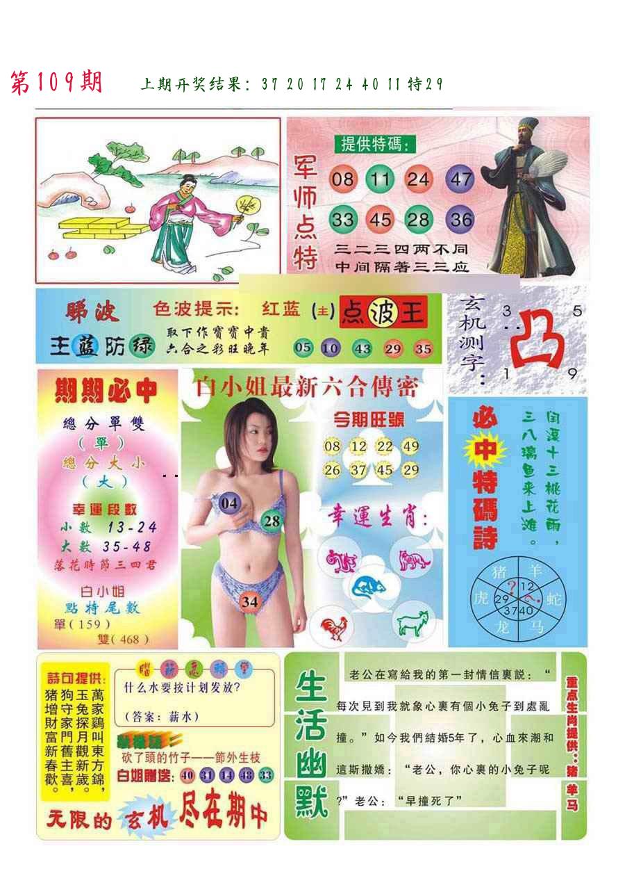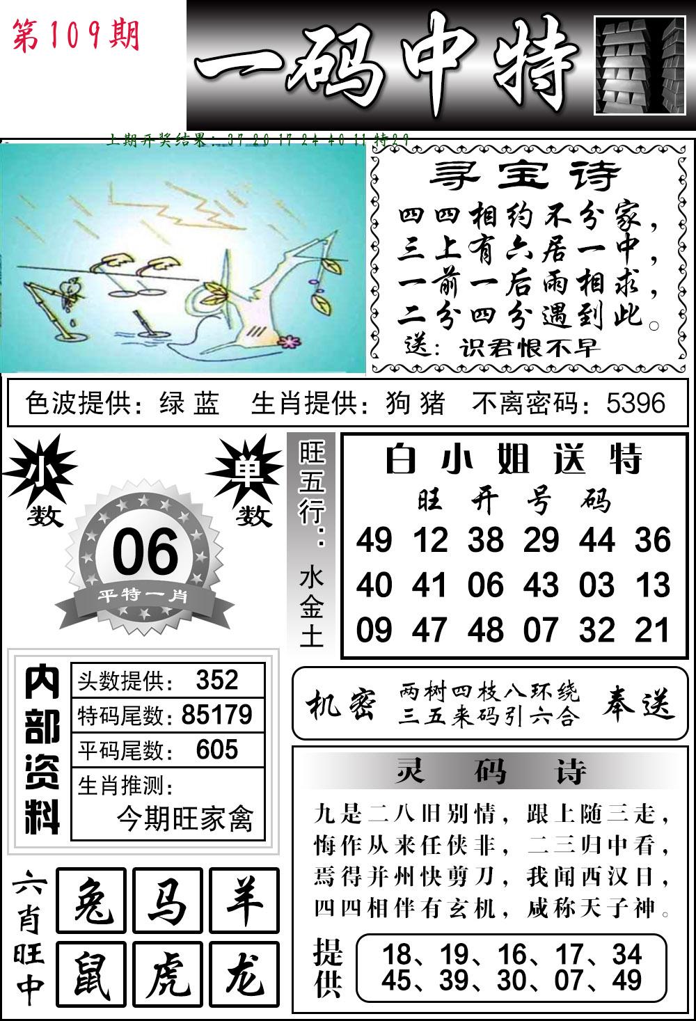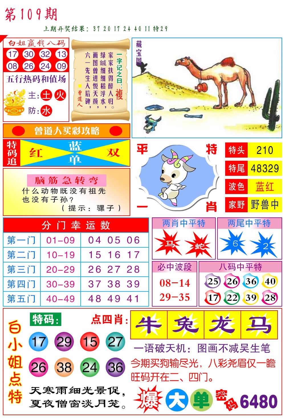 | 109期:2字爆平特【叶公】开:????? |
