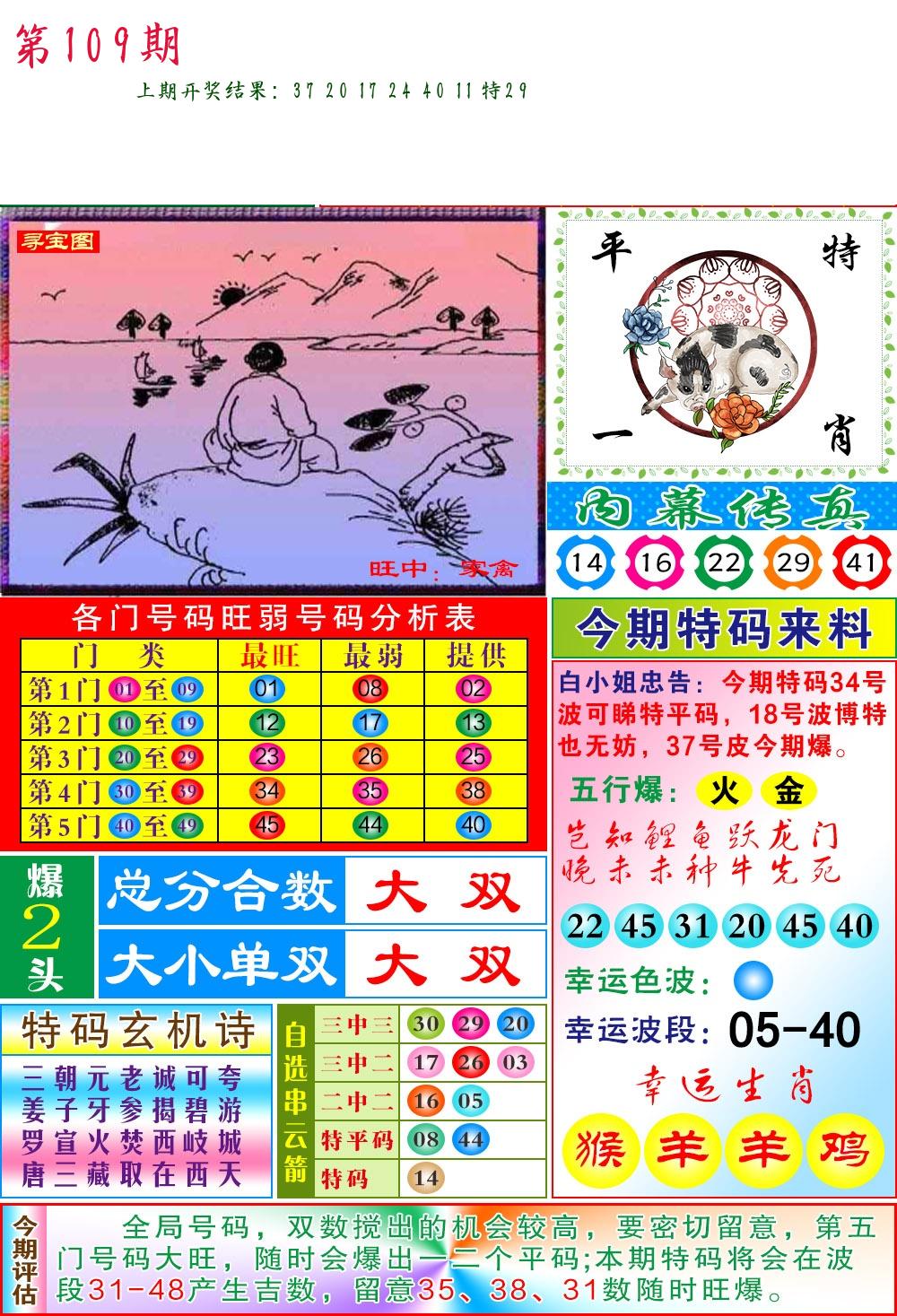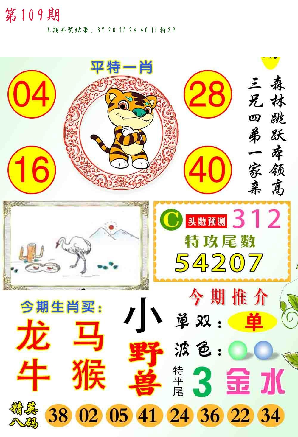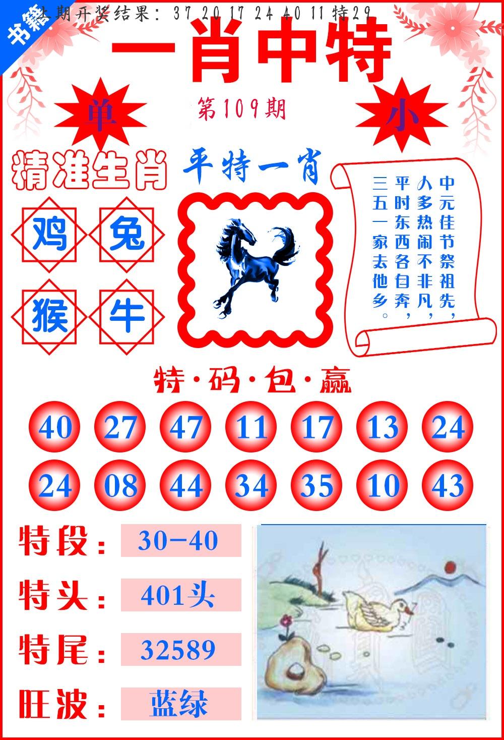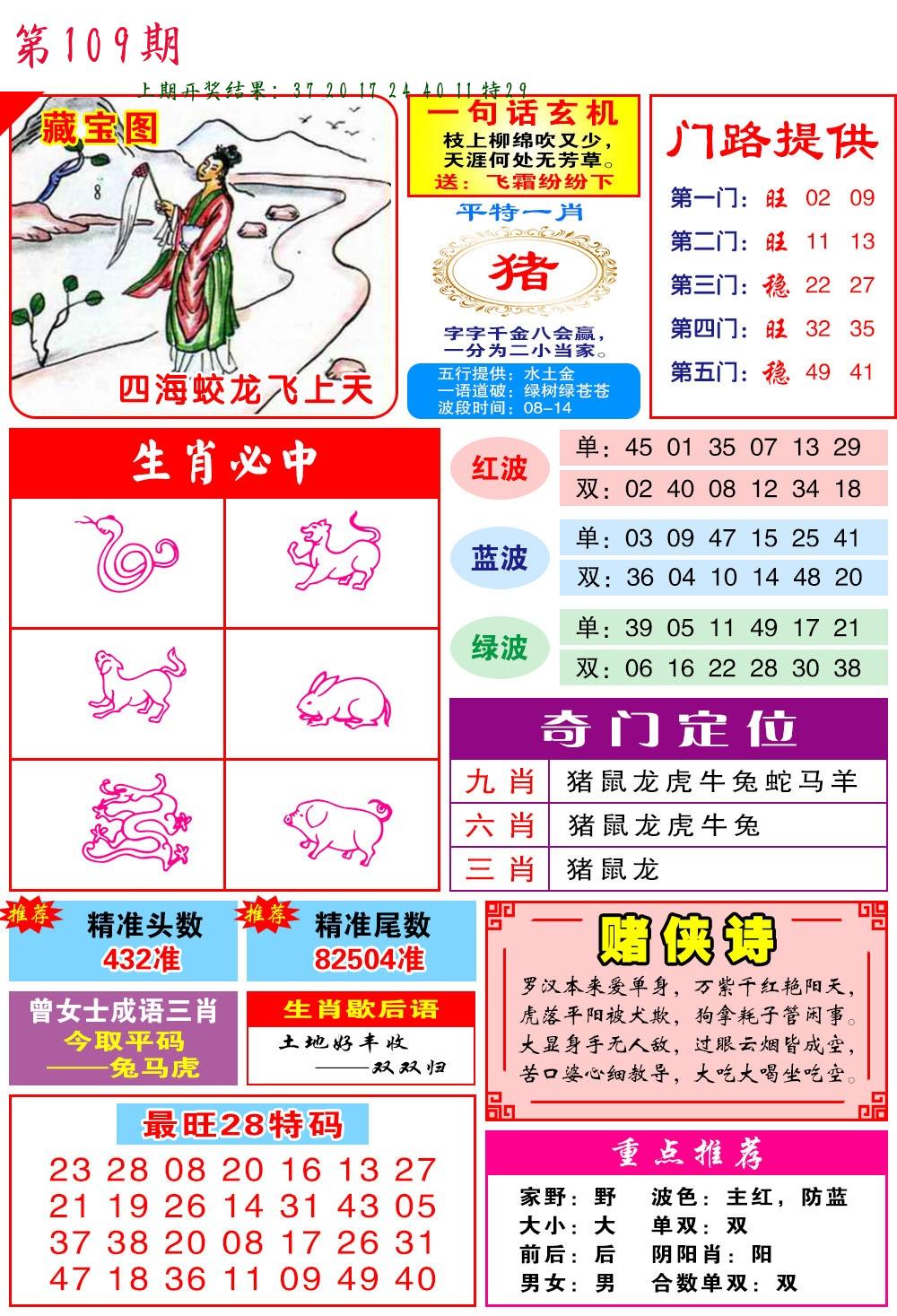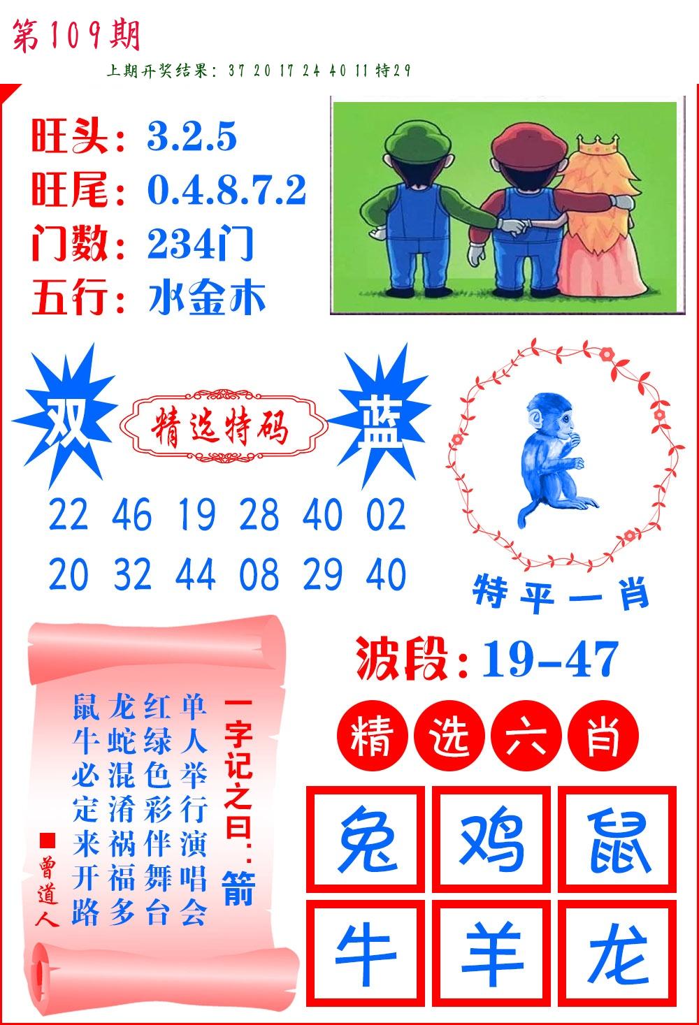 | 109期:2字爆平特【叶公】开:????? |
