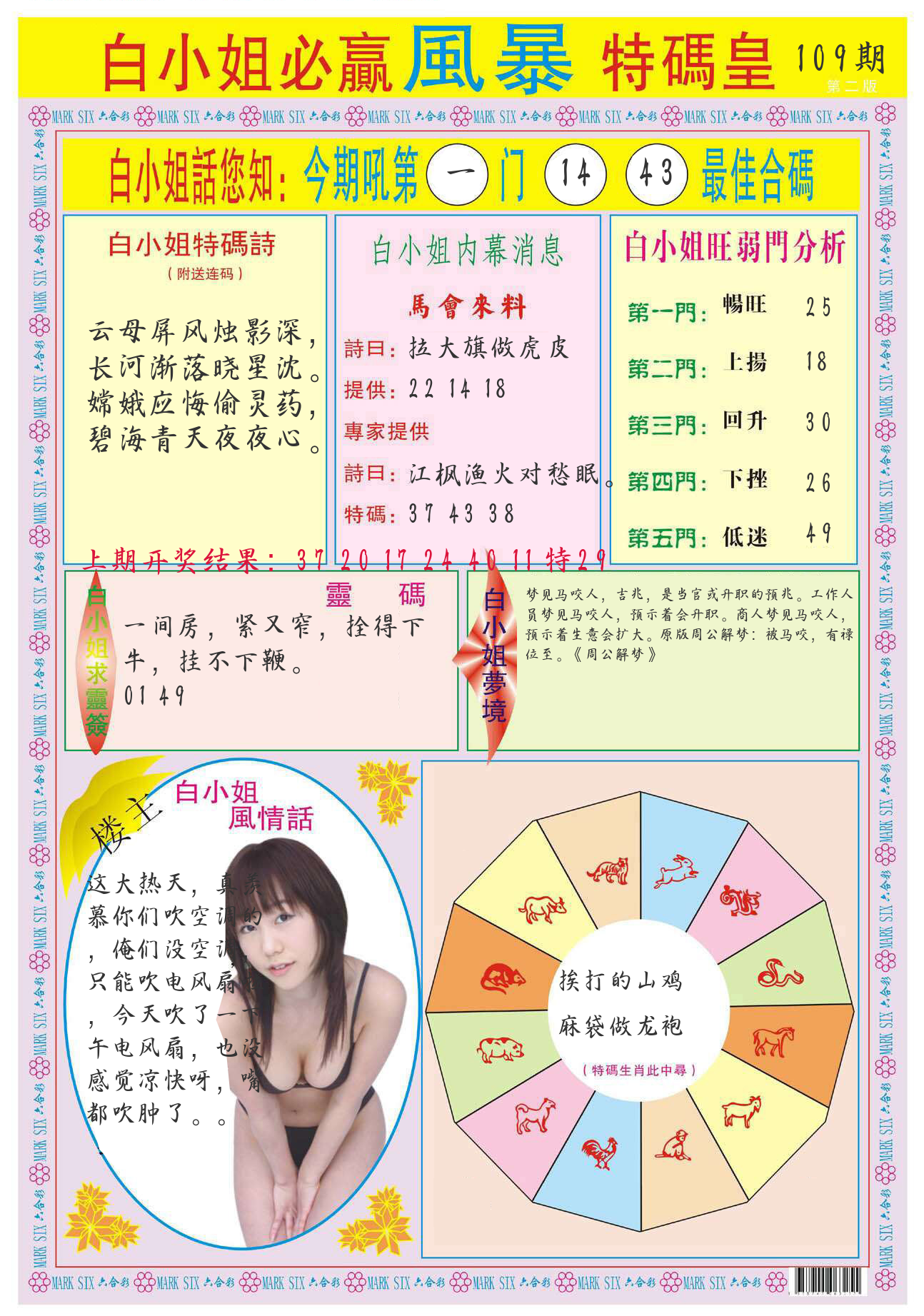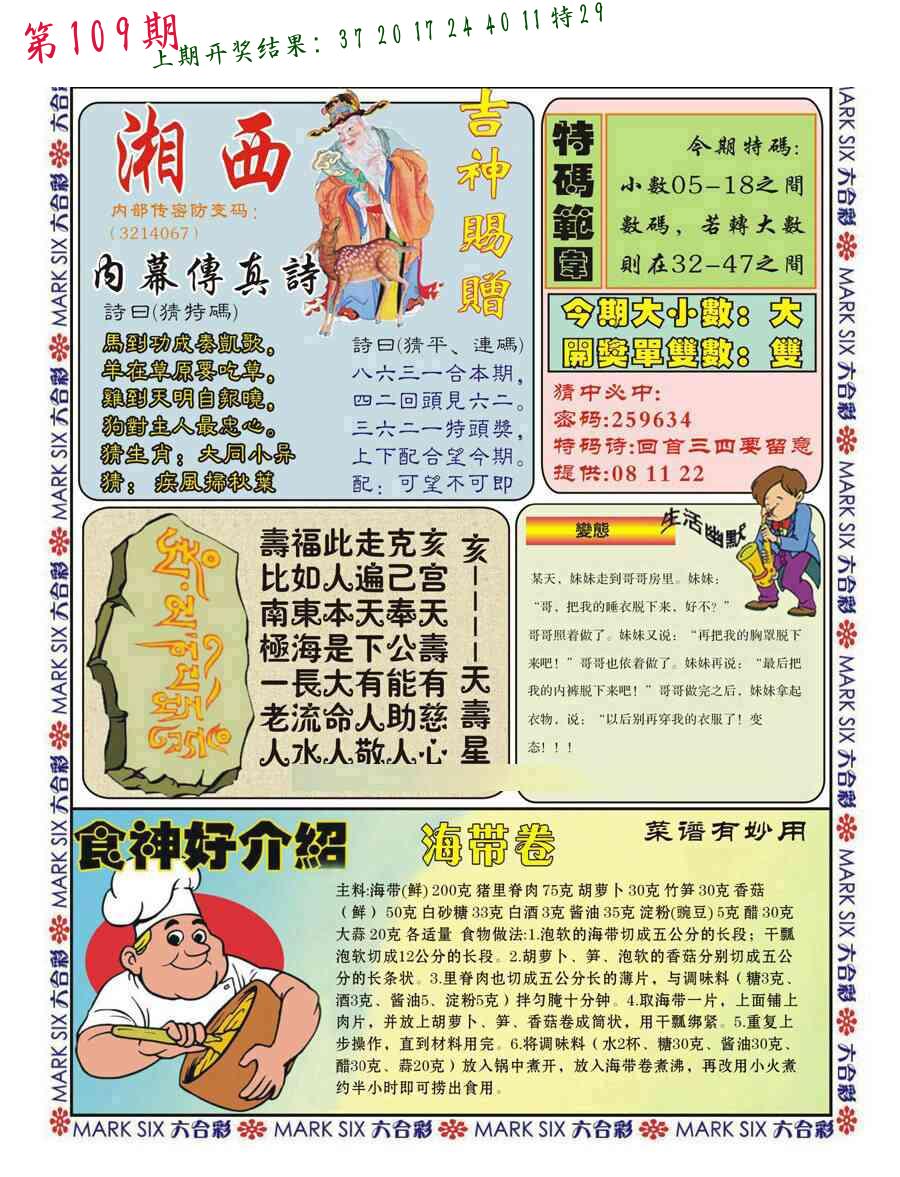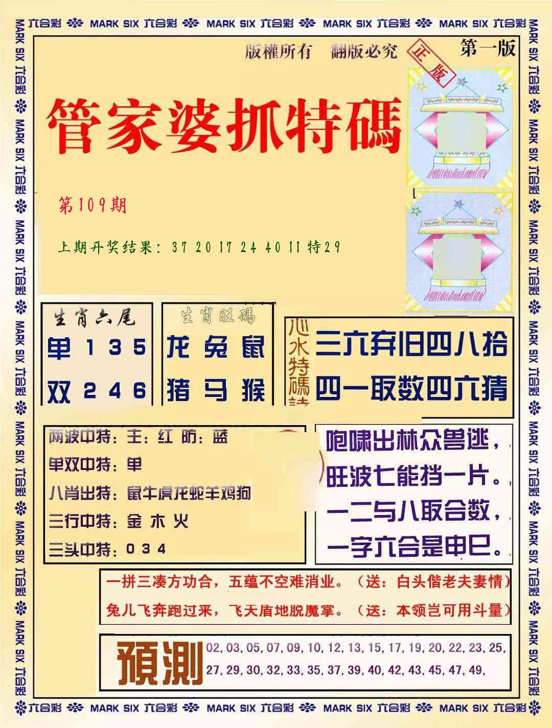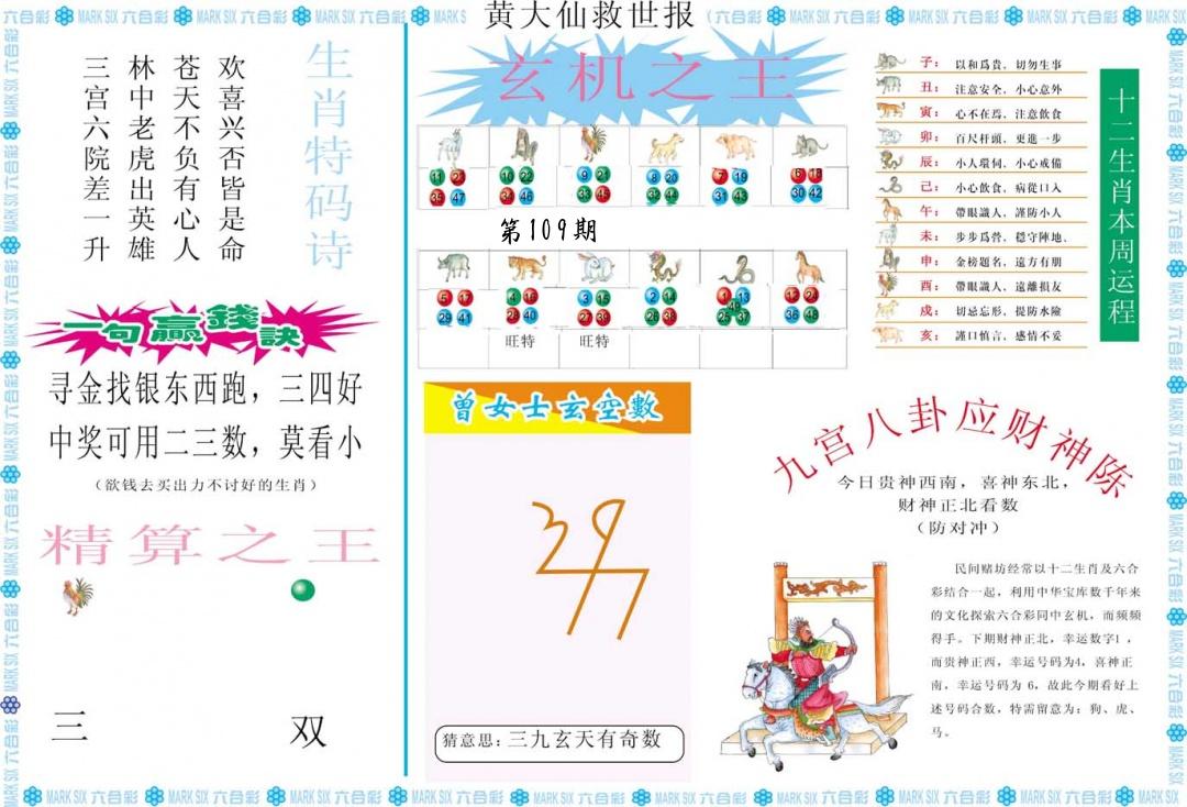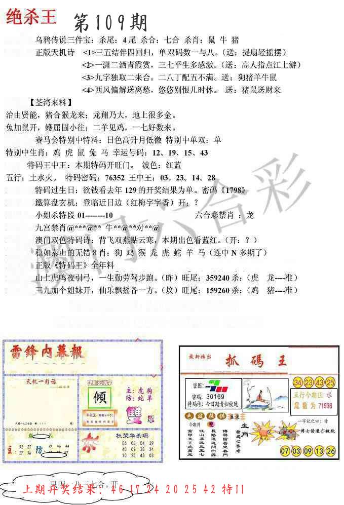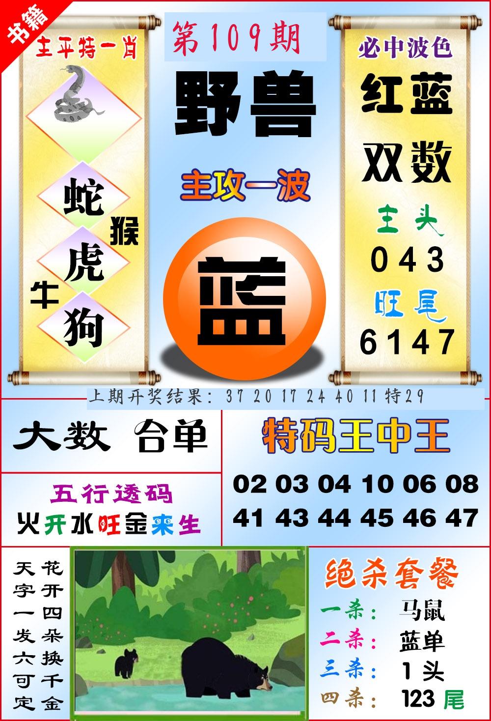 | 109期:2字爆平特【叶公】开:????? |
