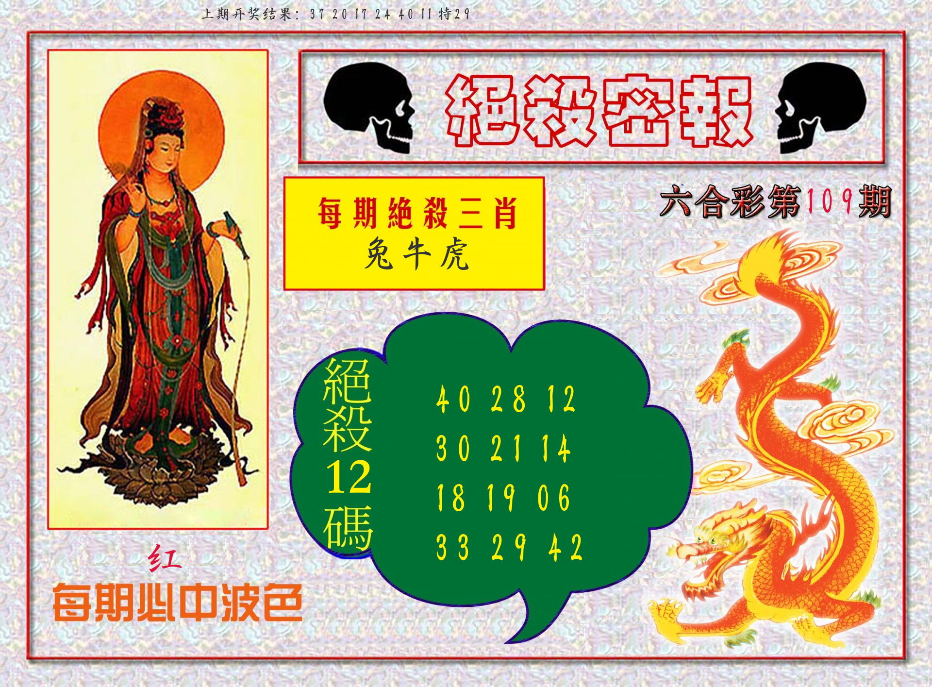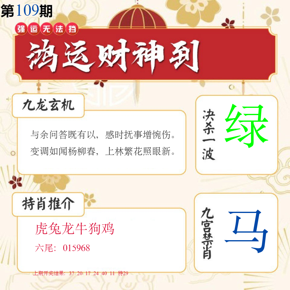 | 107期:绝密▲双波【绿波+红波】开:06牛对 |