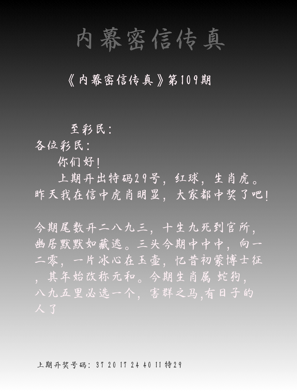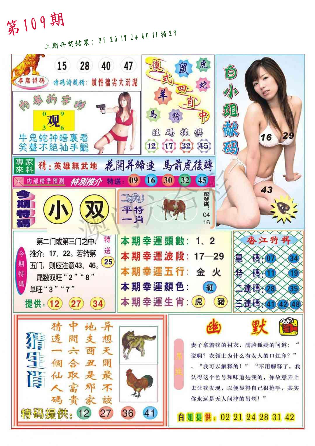 | 108期:2字爆平特【守株】开:29虎 |