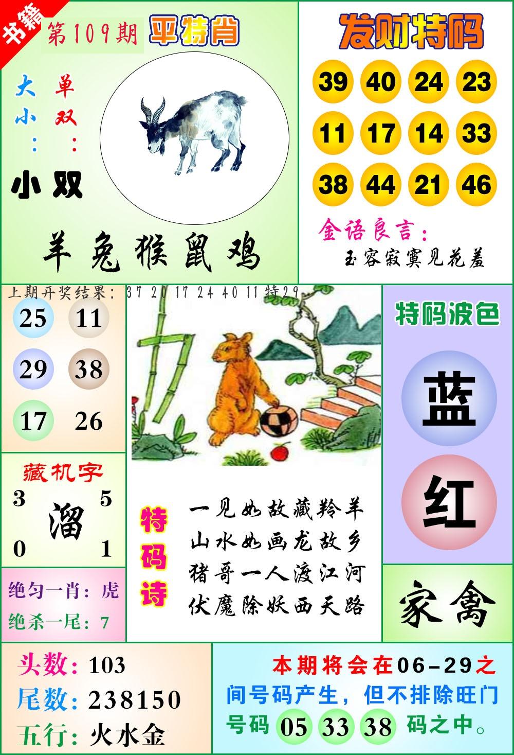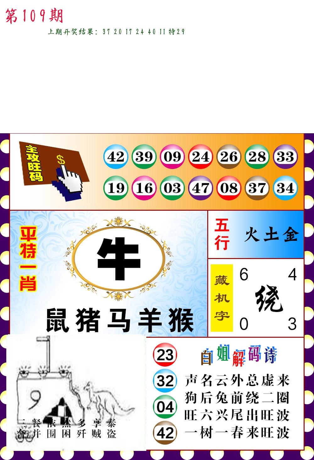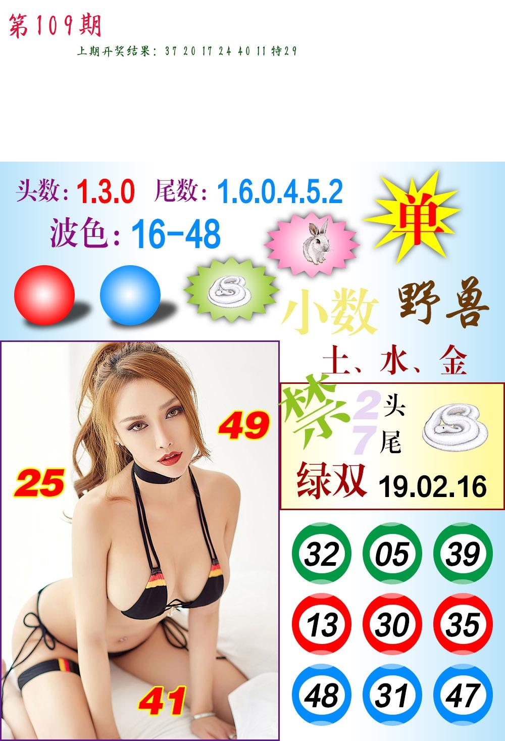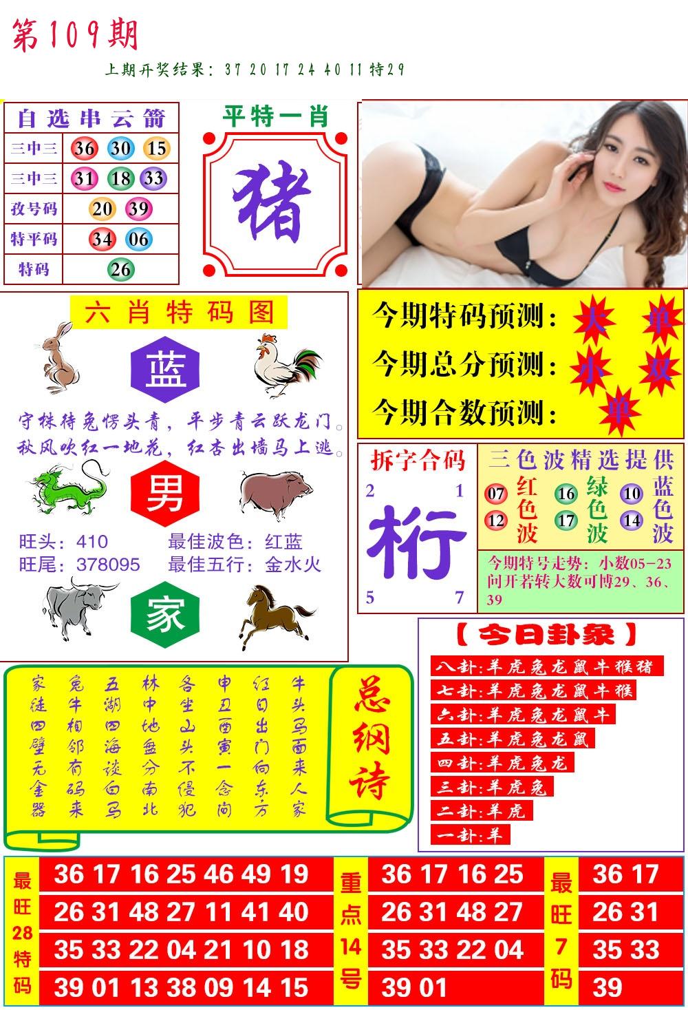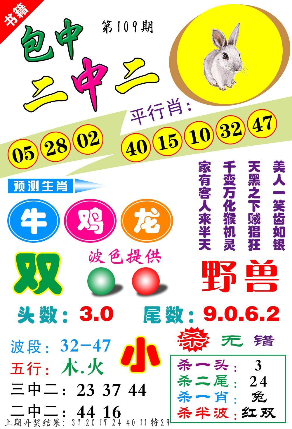| 109期 二肖: 兔猪 | ③码: 29.36.04 |