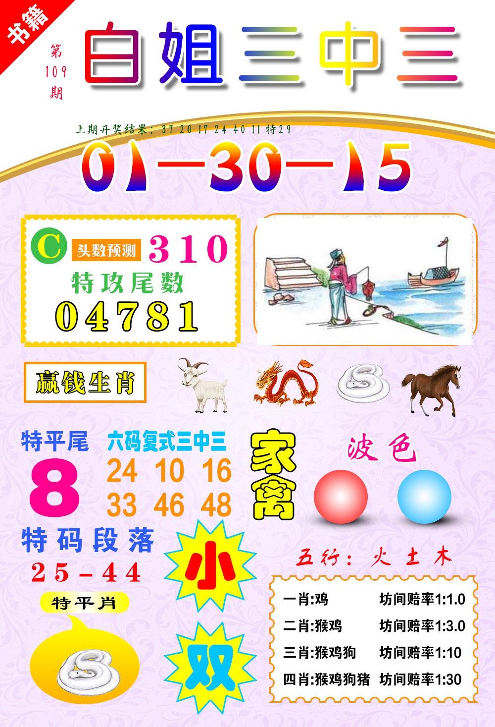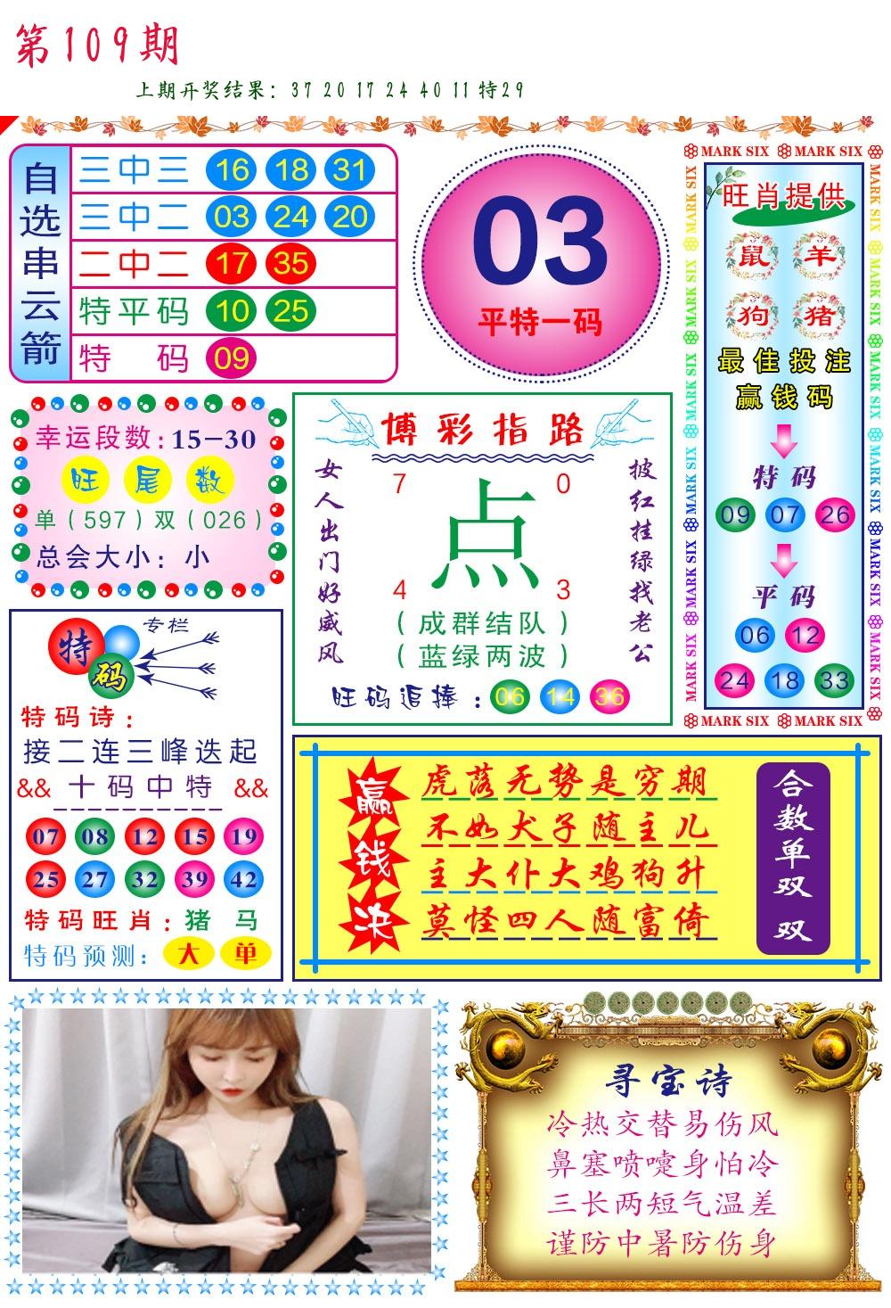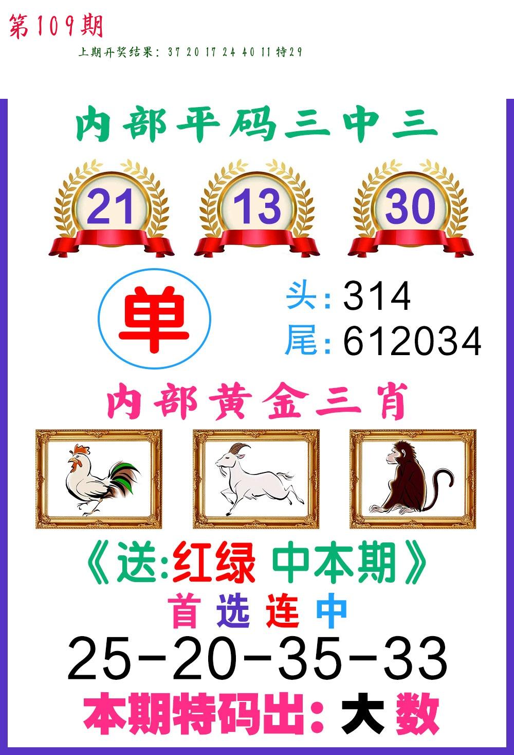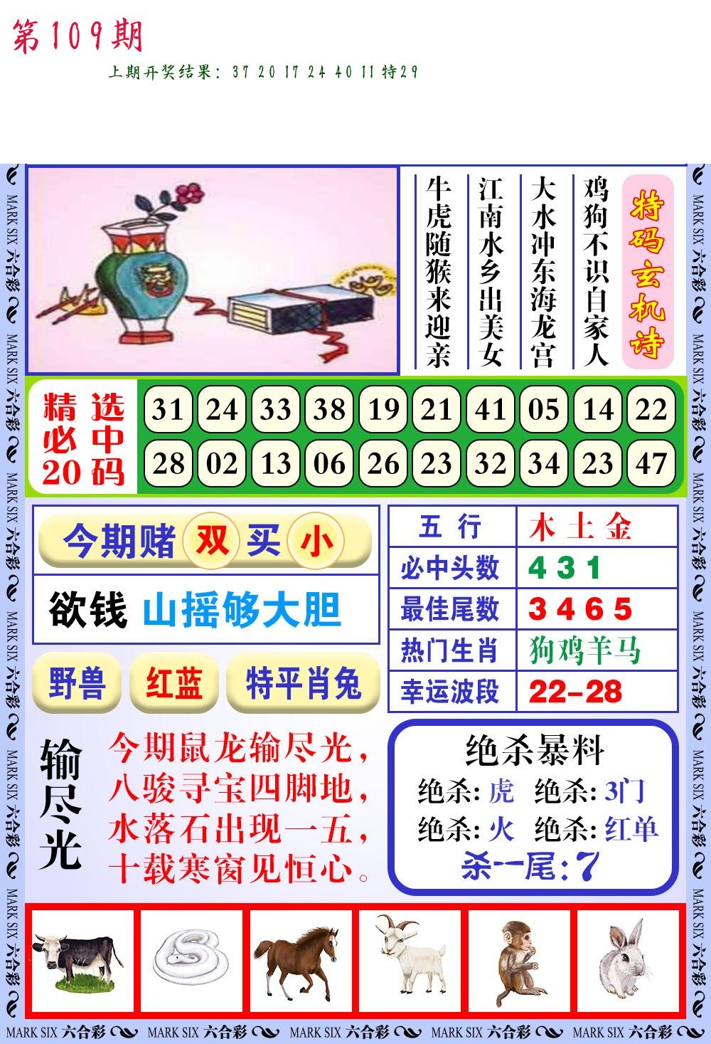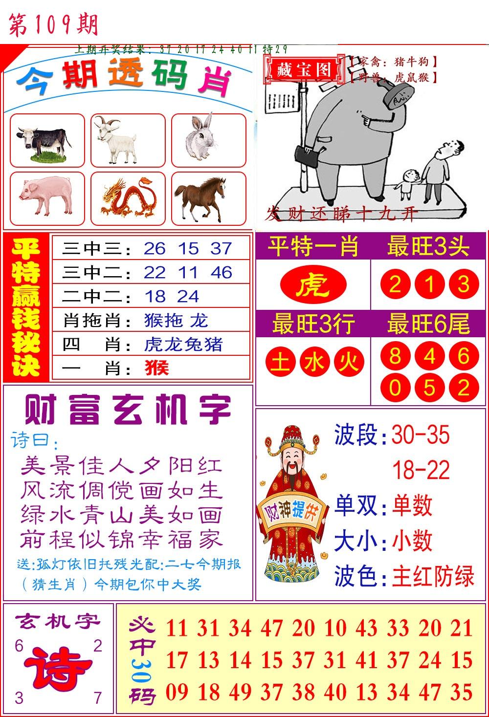 | 109期 二肖: 兔猪 | ③码: 29.36.04 |