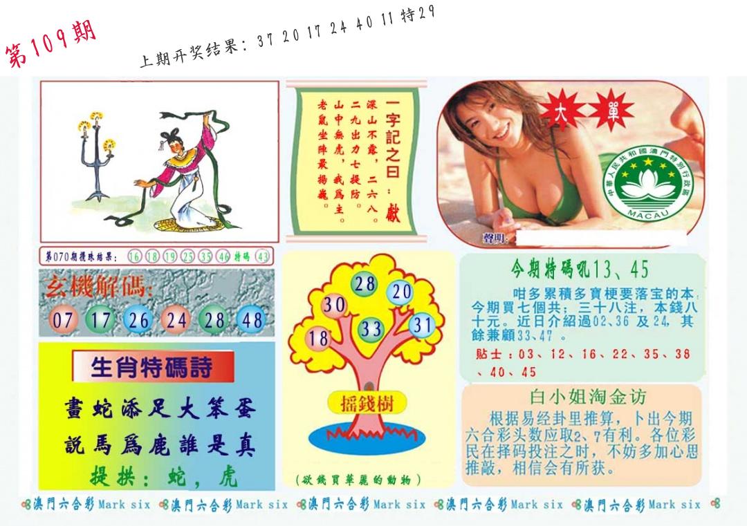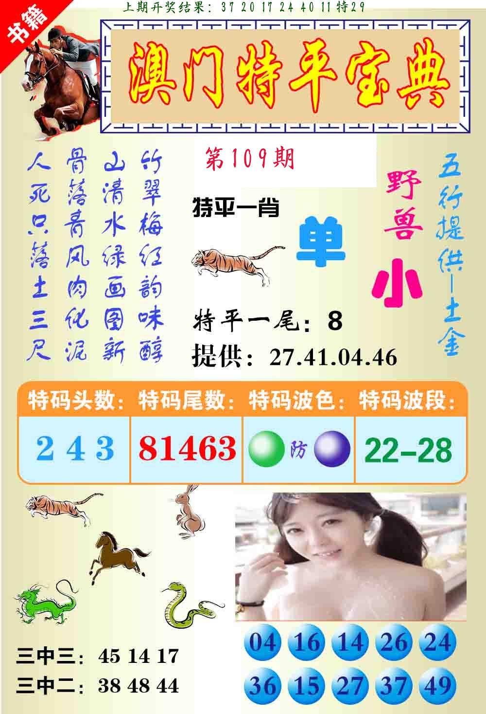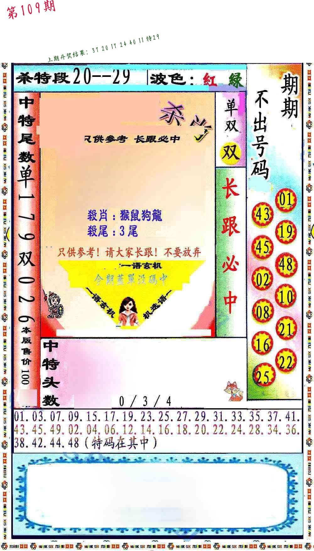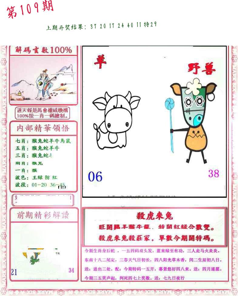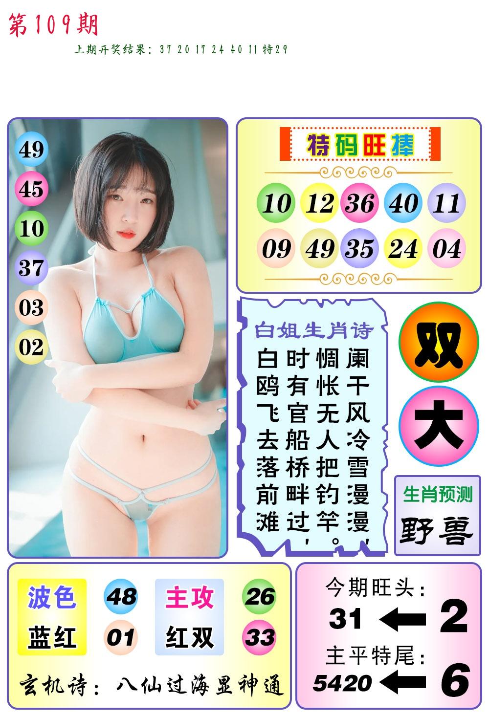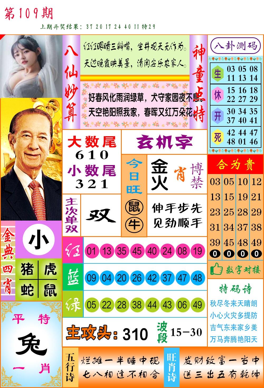 | 109期 二肖: 兔猪 | ③码: 29.36.04 |