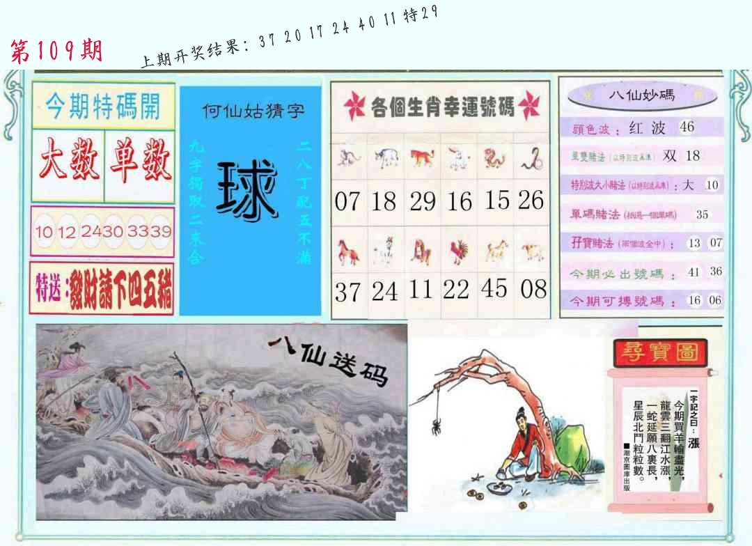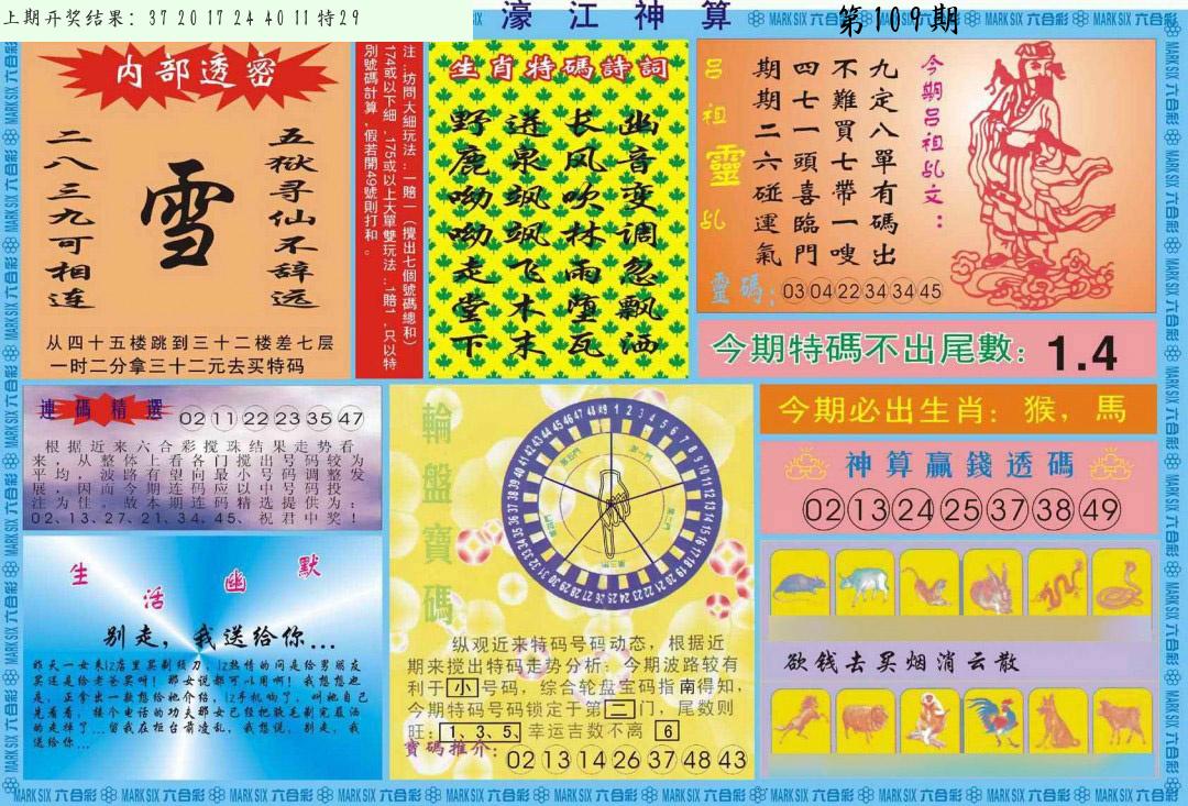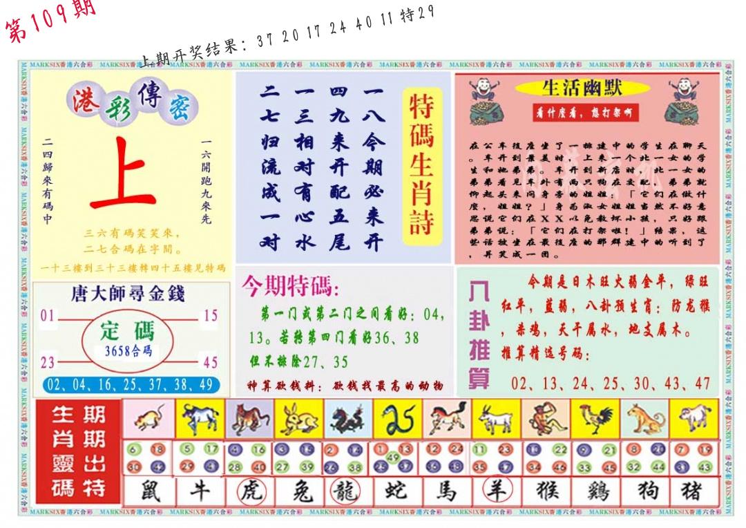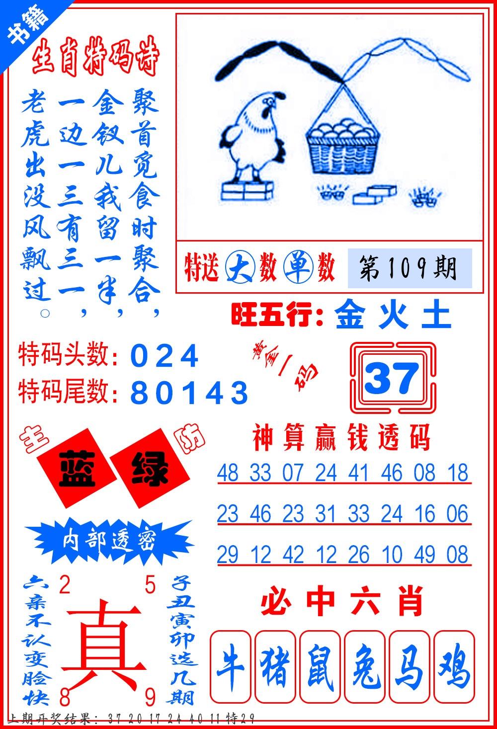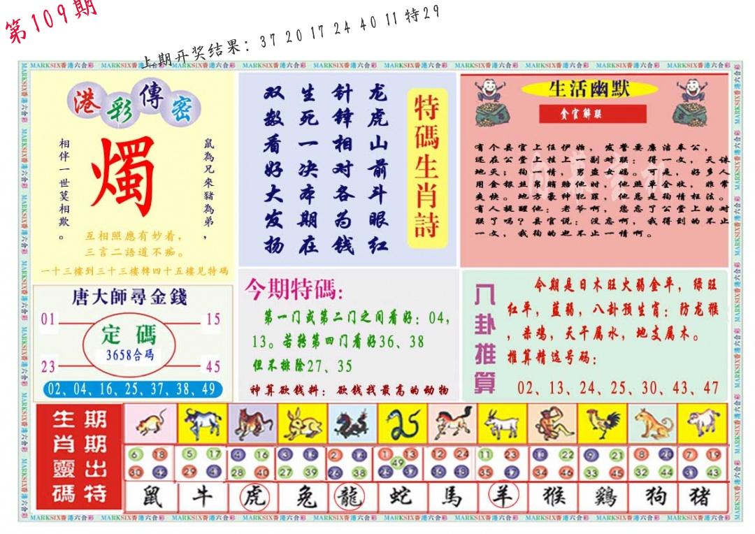 | 109期:8肖16码开:???????