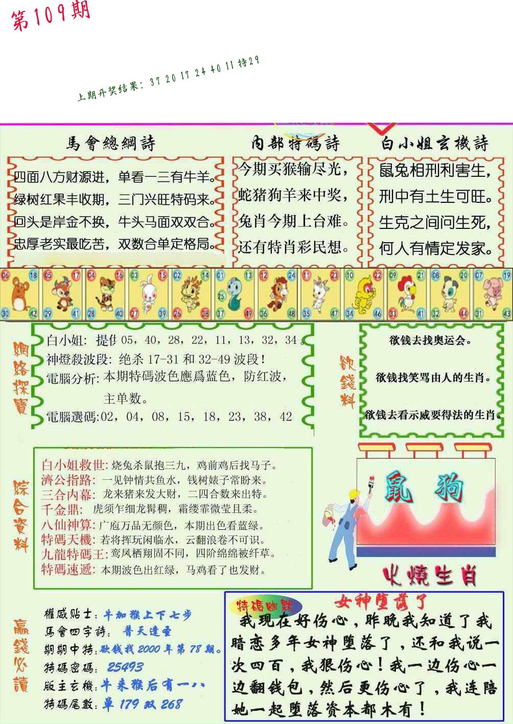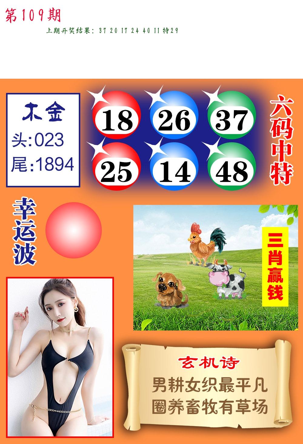| 107期 二肖: 鸡狗 | ③码: 25.37.23 |