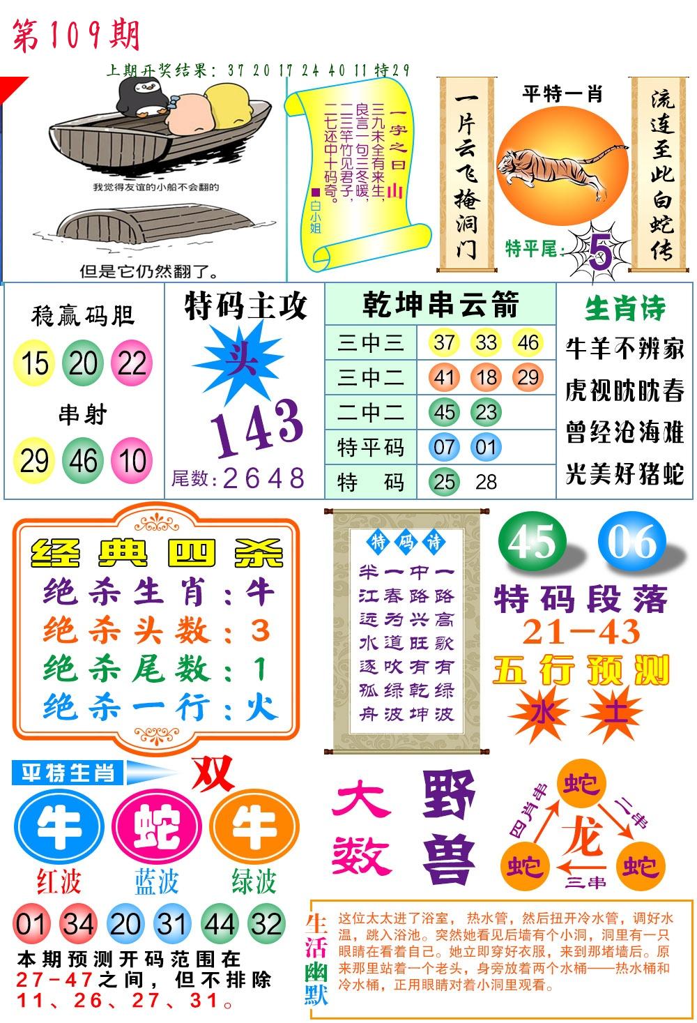 | 109期:平特一尾【888尾】开:????? |