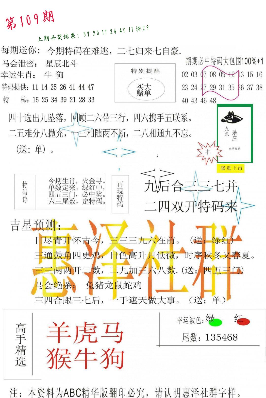 | 109期【三连肖/11.12倍】