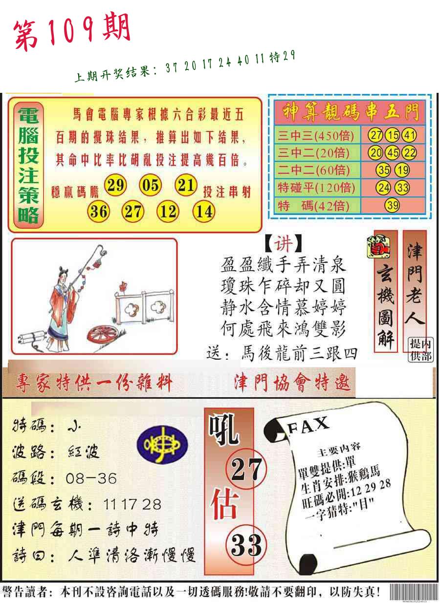 | 109期:开:?????